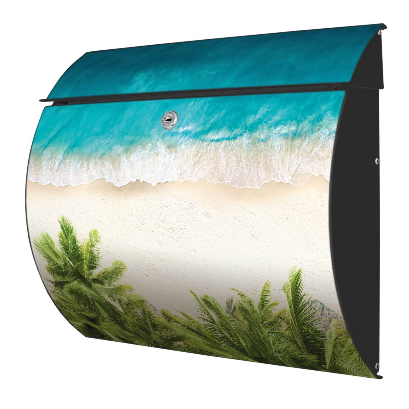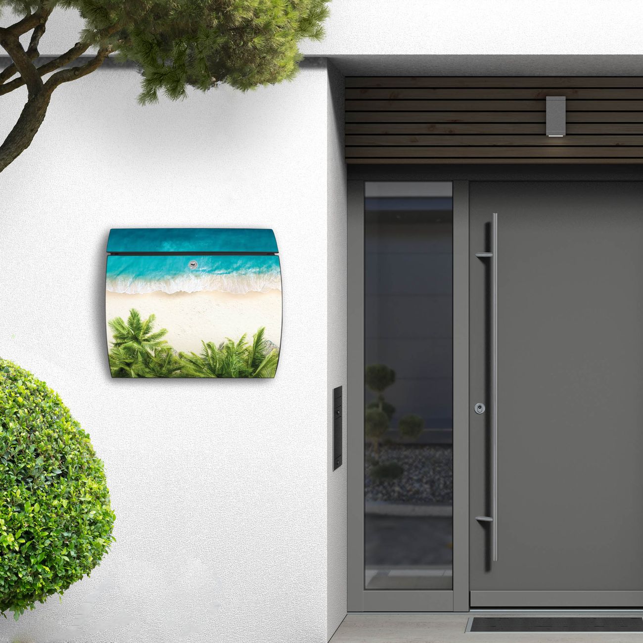 FUNKTION: DESIGN: Das Burg Wächter Modell Toscana mit Motiv Strandtag hat ein sehr ansprechendes und zeitloses Design und ist besonderes wetterfest. Heben Sie Sich von der tristen grauen Masse ab, ohne auf Funktionalität zu verzichten. Wir bieten Ihnen ebenfalls Namensschilder, bereits beschriftet oder frei zu beschriften, und verschiedene selbst gestaltete Bitte-Keine-Werbung-Aufkleber. DETAILS: Der Postkasten besteht aus vollflächig verzinktem Stahl welcher in Anthrazit oder Weiß lackiert wurde oder aus Edelstahl (je nach gewählter Variante). Das Motiv besteht aus einer wetter- und UV-festen Folie, die mit einem Schutzlaminat überzogen ist, durch die Ihren Briefkasten zusätzlich vor Kratzern geschützt ist und auf den Briefkasten kaschiert wurde. Sie erhalten zu Ihrem neuen Design Briefkasten 2 Schlüssel sowie das passende Montagematerial. BANJADO: Ihr Briefkasten wird von Burg Wächter in Deutschland gefertigt und in unserer kleinen Manufaktur von Hand veredelt. Die Motivfolie ist lösungsmittelfrei und schutzlaminiert, dies sorgt für einen langen Halt. Wir legen großen Wert auf die Verbindung von Funktionalität und Design. Sie erhalten besondere Handarbeit aus Sachsen und Made in Germany.