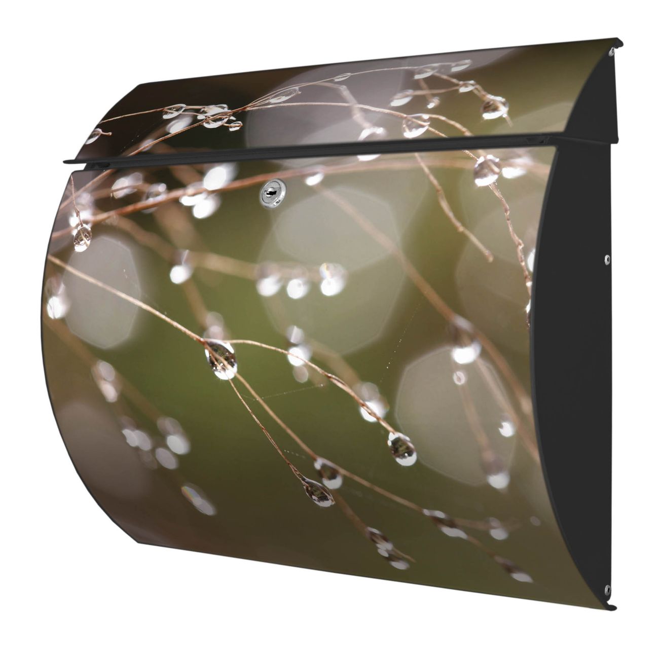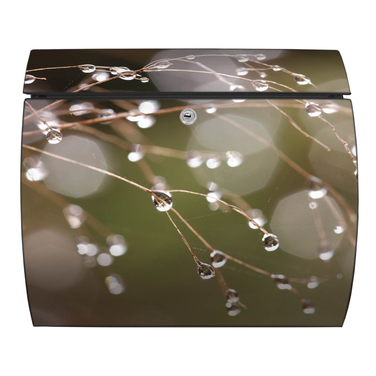 FUNKTION: DESIGN: Das Burg Wächter Modell Toscana mit Motiv Tau Auf Zweigen hat ein sehr ansprechendes und zeitloses Design und ist besonderes wetterfest. Heben Sie Sich von der tristen grauen Masse ab, ohne auf Funktionalität zu verzichten. Wir bieten Ihnen ebenfalls Namensschilder, bereits beschriftet oder frei zu beschriften, und verschiedene selbst gestaltete Bitte-Keine-Werbung-Aufkleber. DETAILS: Der Postkasten besteht aus vollflächig verzinktem Stahl welcher in Anthrazit oder Weiß lackiert wurde oder aus Edelstahl (je nach gewählter Variante). Das Motiv besteht aus einer wetter- und UV-festen Folie, die mit einem Schutzlaminat überzogen ist, durch die Ihren Briefkasten zusätzlich vor Kratzern geschützt ist und auf den Briefkasten kaschiert wurde. Sie erhalten zu Ihrem neuen Design Briefkasten 2 Schlüssel sowie das passende Montagematerial. BANJADO: Ihr Briefkasten wird von Burg Wächter in Deutschland gefertigt und in unserer kleinen Manufaktur von Hand veredelt. Die Motivfolie ist lösungsmittelfrei und schutzlaminiert, dies sorgt für einen langen Halt. Wir legen großen Wert auf die Verbindung von Funktionalität und Design. Sie erhalten besondere Handarbeit aus Sachsen und Made in Germany.