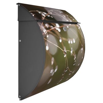 Der geschwungene Burg Wächter Briefkasten Toscana mit Motiv Tau Auf Zweigen bietet Ihnen mit seinem großen Fassungsvermögen genügend Platz auch für große A4 Sendungen. Auf Wunsch können Sie bei uns den passenden Standfuß bestellen und so aus dem Wandbriefkasten einen Standbriefkasten machen. Der integrierte Öffnungsstopp ermöglicht eine einfache Handhabung beim Entnehmen der Post.