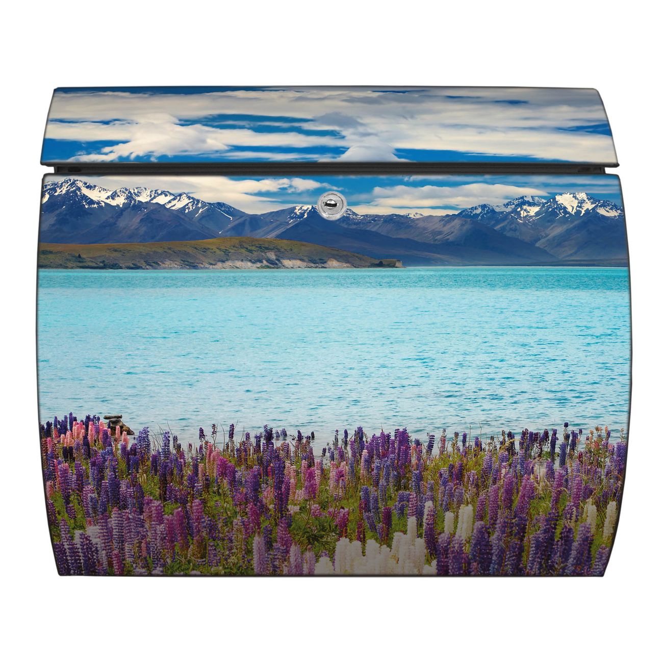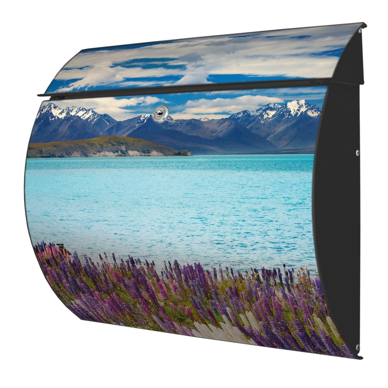 Der geschwungene Burg Wächter Briefkasten Toscana mit Motiv Tekapo See bietet Ihnen mit seinem großen Fassungsvermögen genügend Platz auch für große A4 Sendungen. Auf Wunsch können Sie bei uns den passenden Standfuß bestellen und so aus dem Wandbriefkasten einen Standbriefkasten machen. Der integrierte Öffnungsstopp ermöglicht eine einfache Handhabung beim Entnehmen der Post.