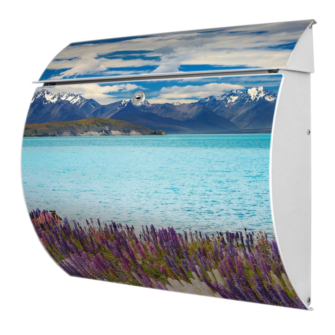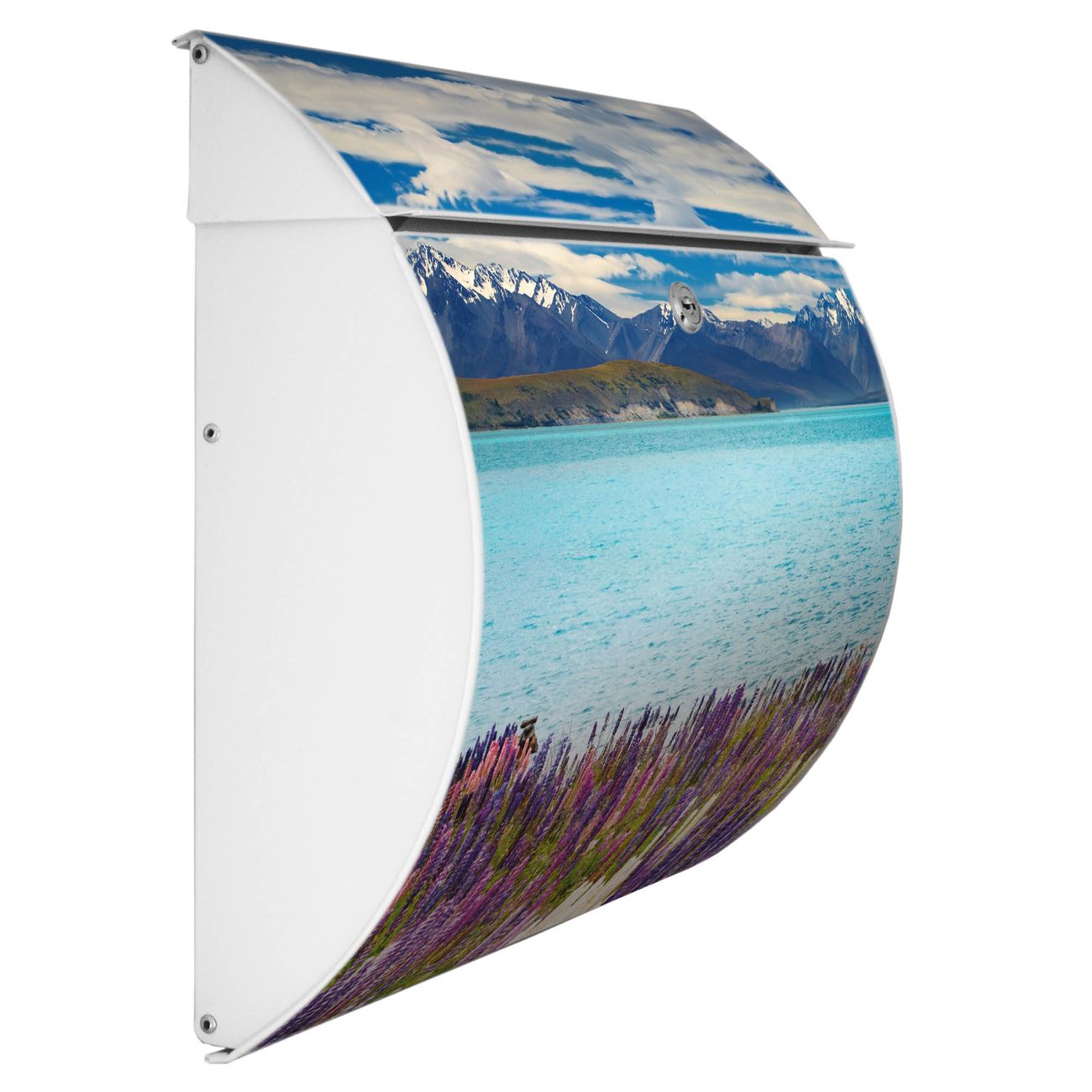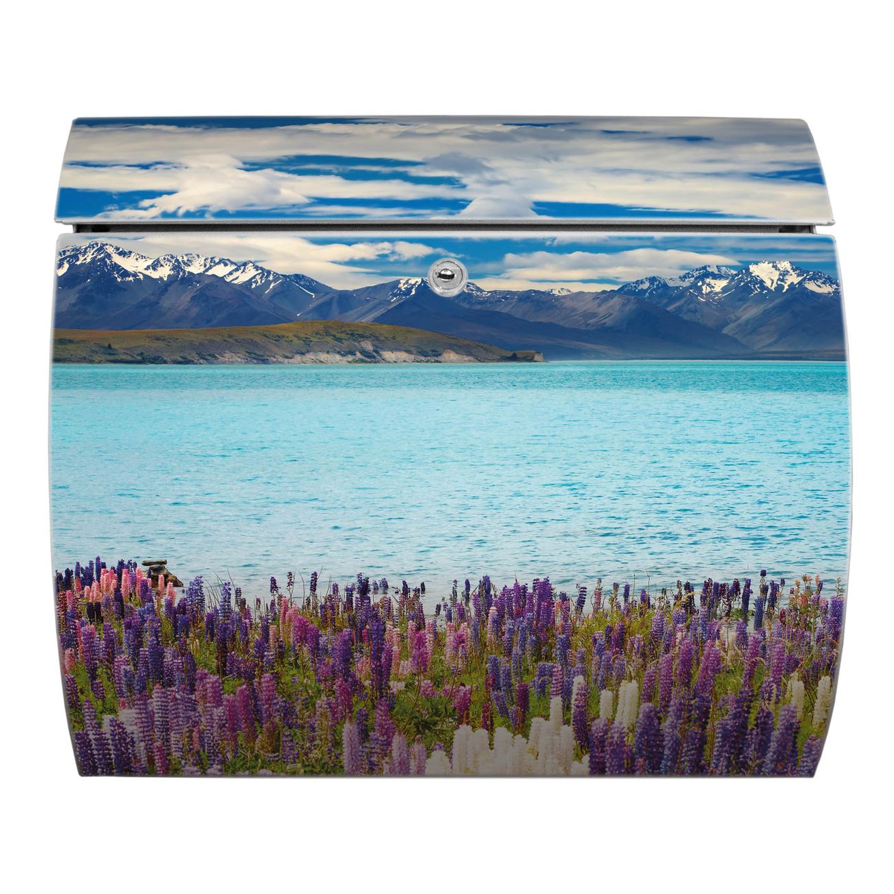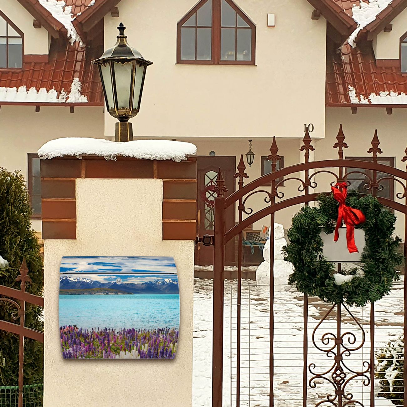 Der geschwungene Burg Wächter Briefkasten Toscana mit Motiv Tekapo See bietet Ihnen mit seinem großen Fassungsvermögen genügend Platz auch für große A4 Sendungen. Auf Wunsch können Sie bei uns den passenden Standfuß bestellen und so aus dem Wandbriefkasten einen Standbriefkasten machen. Der integrierte Öffnungsstopp ermöglicht eine einfache Handhabung beim Entnehmen der Post.