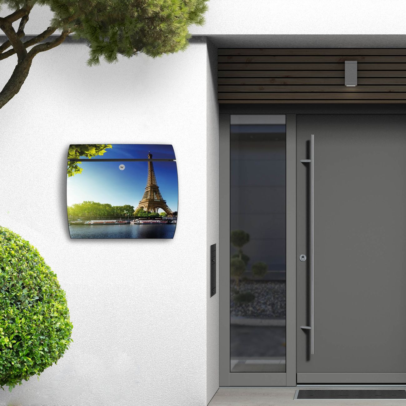 FUNKTION: DESIGN: Das Burg Wächter Modell Toscana mit Motiv Tour Eiffel hat ein sehr ansprechendes und zeitloses Design und ist besonderes wetterfest. Heben Sie Sich von der tristen grauen Masse ab, ohne auf Funktionalität zu verzichten. Wir bieten Ihnen ebenfalls Namensschilder, bereits beschriftet oder frei zu beschriften, und verschiedene selbst gestaltete Bitte-Keine-Werbung-Aufkleber. DETAILS: Der Postkasten besteht aus vollflächig verzinktem Stahl welcher in Anthrazit oder Weiß lackiert wurde oder aus Edelstahl (je nach gewählter Variante). Das Motiv besteht aus einer wetter- und UV-festen Folie, die mit einem Schutzlaminat überzogen ist, durch die Ihren Briefkasten zusätzlich vor Kratzern geschützt ist und auf den Briefkasten kaschiert wurde. Sie erhalten zu Ihrem neuen Design Briefkasten 2 Schlüssel sowie das passende Montagematerial. BANJADO: Ihr Briefkasten wird von Burg Wächter in Deutschland gefertigt und in unserer kleinen Manufaktur von Hand veredelt. Die Motivfolie ist lösungsmittelfrei und schutzlaminiert, dies sorgt für einen langen Halt. Wir legen großen Wert auf die Verbindung von Funktionalität und Design. Sie erhalten besondere Handarbeit aus Sachsen und Made in Germany.