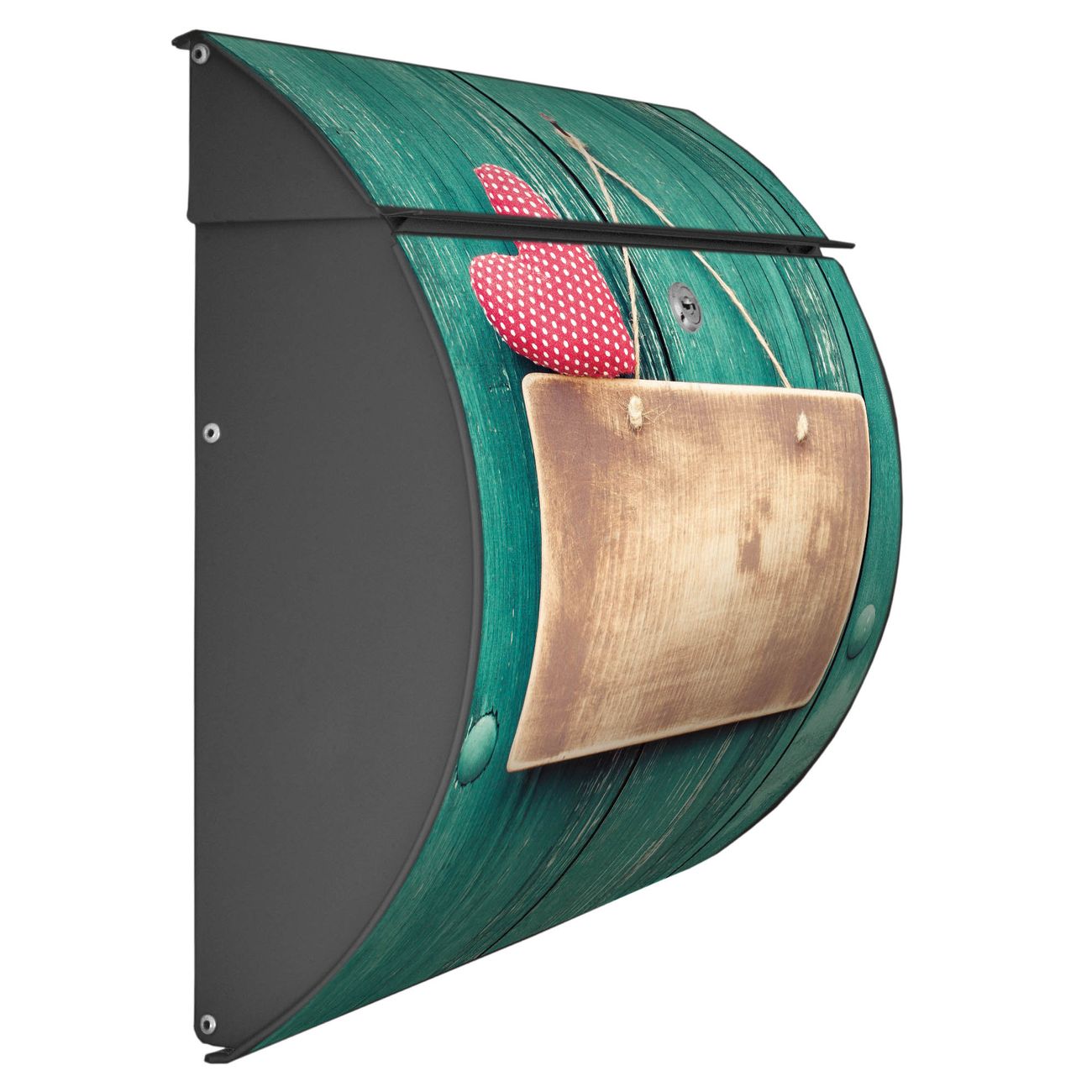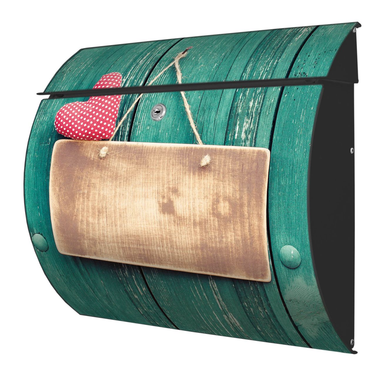 Der geschwungene Burg Wächter Briefkasten Toscana mit Motiv Tür mit Herz bietet Ihnen mit seinem großen Fassungsvermögen genügend Platz auch für große A4 Sendungen. Auf Wunsch können Sie bei uns den passenden Standfuß bestellen und so aus dem Wandbriefkasten einen Standbriefkasten machen. Der integrierte Öffnungsstopp ermöglicht eine einfache Handhabung beim Entnehmen der Post.