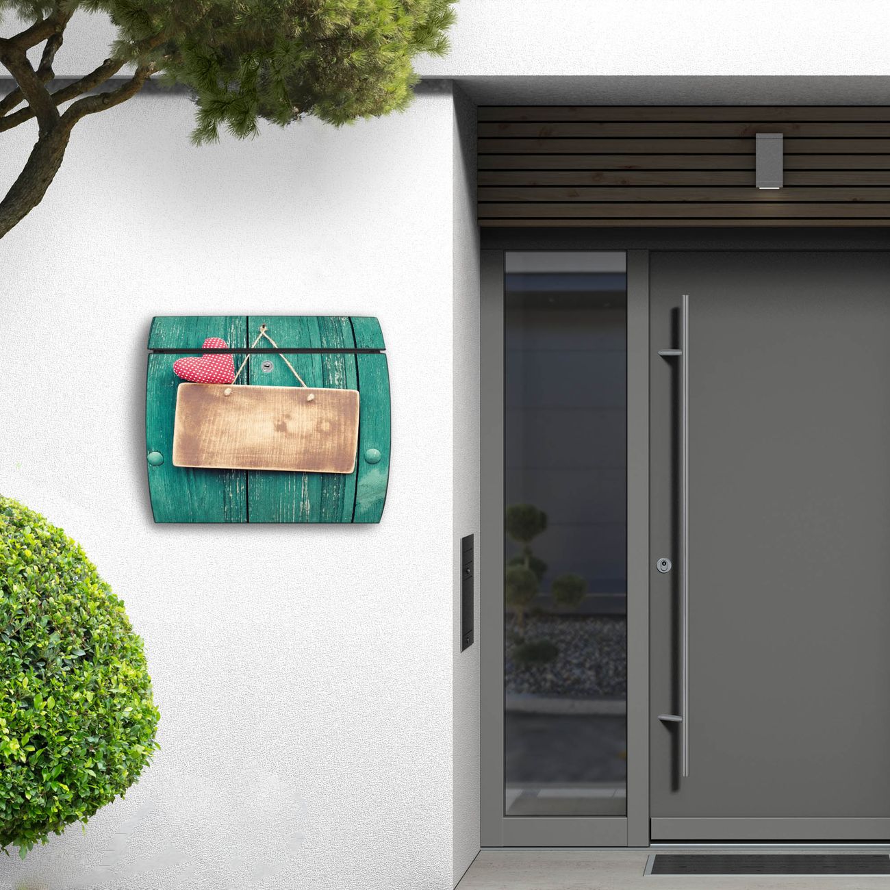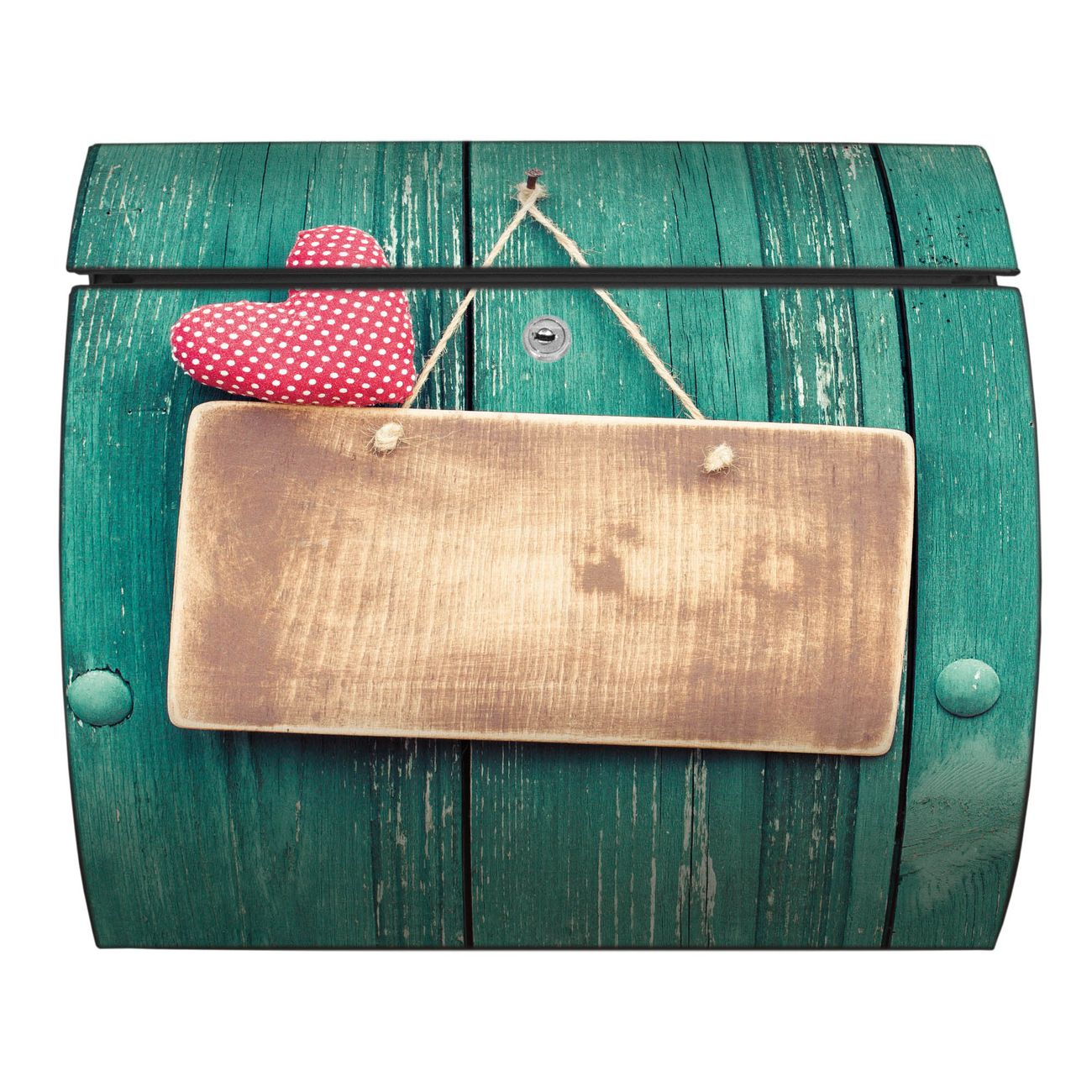 FUNKTION: DESIGN: Das Burg Wächter Modell Toscana mit Motiv Tür mit Herz hat ein sehr ansprechendes und zeitloses Design und ist besonderes wetterfest. Heben Sie Sich von der tristen grauen Masse ab, ohne auf Funktionalität zu verzichten. Wir bieten Ihnen ebenfalls Namensschilder, bereits beschriftet oder frei zu beschriften, und verschiedene selbst gestaltete Bitte-Keine-Werbung-Aufkleber. DETAILS: Der Postkasten besteht aus vollflächig verzinktem Stahl welcher in Anthrazit oder Weiß lackiert wurde oder aus Edelstahl (je nach gewählter Variante). Das Motiv besteht aus einer wetter- und UV-festen Folie, die mit einem Schutzlaminat überzogen ist, durch die Ihren Briefkasten zusätzlich vor Kratzern geschützt ist und auf den Briefkasten kaschiert wurde. Sie erhalten zu Ihrem neuen Design Briefkasten 2 Schlüssel sowie das passende Montagematerial. BANJADO: Ihr Briefkasten wird von Burg Wächter in Deutschland gefertigt und in unserer kleinen Manufaktur von Hand veredelt. Die Motivfolie ist lösungsmittelfrei und schutzlaminiert, dies sorgt für einen langen Halt. Wir legen großen Wert auf die Verbindung von Funktionalität und Design. Sie erhalten besondere Handarbeit aus Sachsen und Made in Germany.