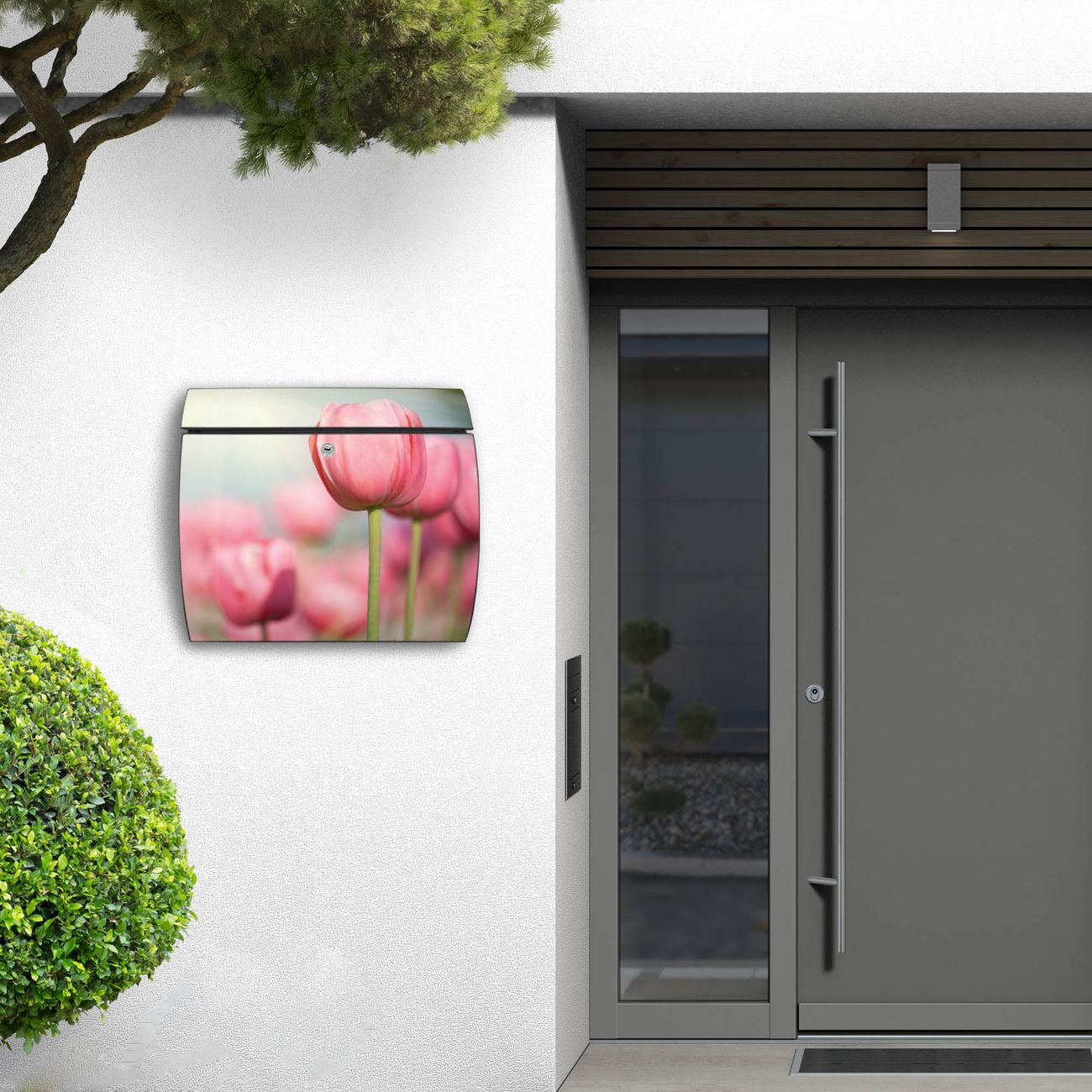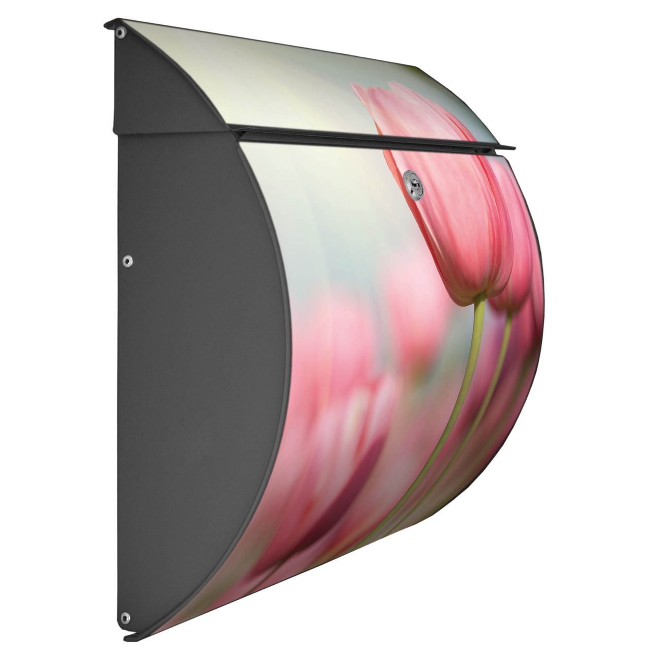 FUNKTION: DESIGN: Das Burg Wächter Modell Toscana mit Motiv Tulpen hat ein sehr ansprechendes und zeitloses Design und ist besonderes wetterfest. Heben Sie Sich von der tristen grauen Masse ab, ohne auf Funktionalität zu verzichten. Wir bieten Ihnen ebenfalls Namensschilder, bereits beschriftet oder frei zu beschriften, und verschiedene selbst gestaltete Bitte-Keine-Werbung-Aufkleber. DETAILS: Der Postkasten besteht aus vollflächig verzinktem Stahl welcher in Anthrazit oder Weiß lackiert wurde oder aus Edelstahl (je nach gewählter Variante). Das Motiv besteht aus einer wetter- und UV-festen Folie, die mit einem Schutzlaminat überzogen ist, durch die Ihren Briefkasten zusätzlich vor Kratzern geschützt ist und auf den Briefkasten kaschiert wurde. Sie erhalten zu Ihrem neuen Design Briefkasten 2 Schlüssel sowie das passende Montagematerial. BANJADO: Ihr Briefkasten wird von Burg Wächter in Deutschland gefertigt und in unserer kleinen Manufaktur von Hand veredelt. Die Motivfolie ist lösungsmittelfrei und schutzlaminiert, dies sorgt für einen langen Halt. Wir legen großen Wert auf die Verbindung von Funktionalität und Design. Sie erhalten besondere Handarbeit aus Sachsen und Made in Germany.
