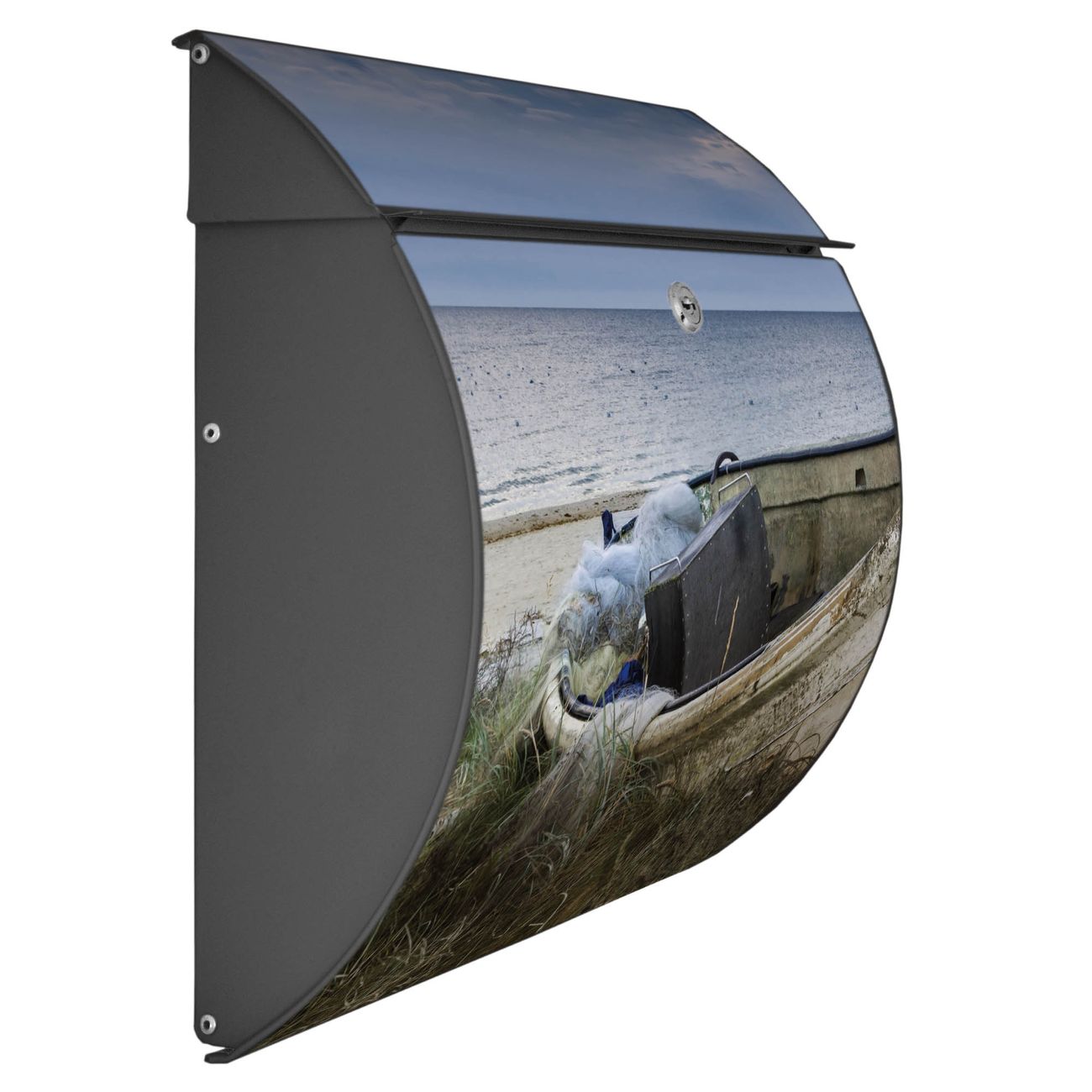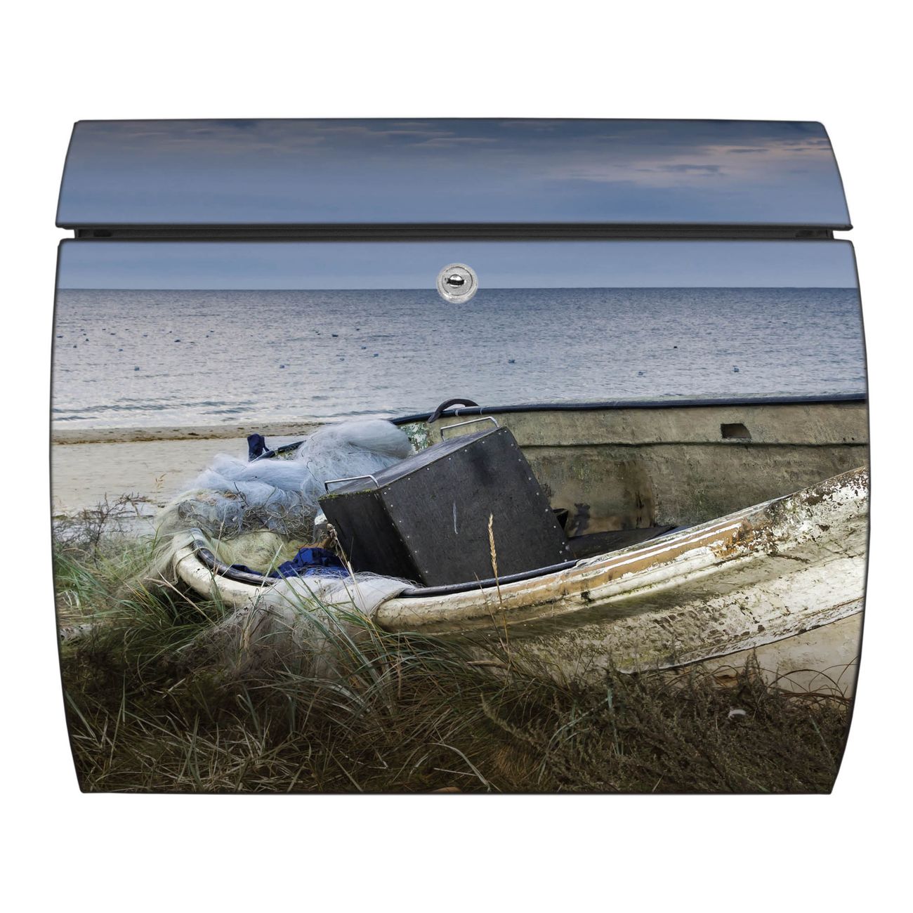 FUNKTION: DESIGN: Das Burg Wächter Modell Toscana mit Motiv Vergessenes Fischerboot hat ein sehr ansprechendes und zeitloses Design und ist besonderes wetterfest. Heben Sie Sich von der tristen grauen Masse ab, ohne auf Funktionalität zu verzichten. Wir bieten Ihnen ebenfalls Namensschilder, bereits beschriftet oder frei zu beschriften, und verschiedene selbst gestaltete Bitte-Keine-Werbung-Aufkleber. DETAILS: Der Postkasten besteht aus vollflächig verzinktem Stahl welcher in Anthrazit oder Weiß lackiert wurde oder aus Edelstahl (je nach gewählter Variante). Das Motiv besteht aus einer wetter- und UV-festen Folie, die mit einem Schutzlaminat überzogen ist, durch die Ihren Briefkasten zusätzlich vor Kratzern geschützt ist und auf den Briefkasten kaschiert wurde. Sie erhalten zu Ihrem neuen Design Briefkasten 2 Schlüssel sowie das passende Montagematerial. BANJADO: Ihr Briefkasten wird von Burg Wächter in Deutschland gefertigt und in unserer kleinen Manufaktur von Hand veredelt. Die Motivfolie ist lösungsmittelfrei und schutzlaminiert, dies sorgt für einen langen Halt. Wir legen großen Wert auf die Verbindung von Funktionalität und Design. Sie erhalten besondere Handarbeit aus Sachsen und Made in Germany.
