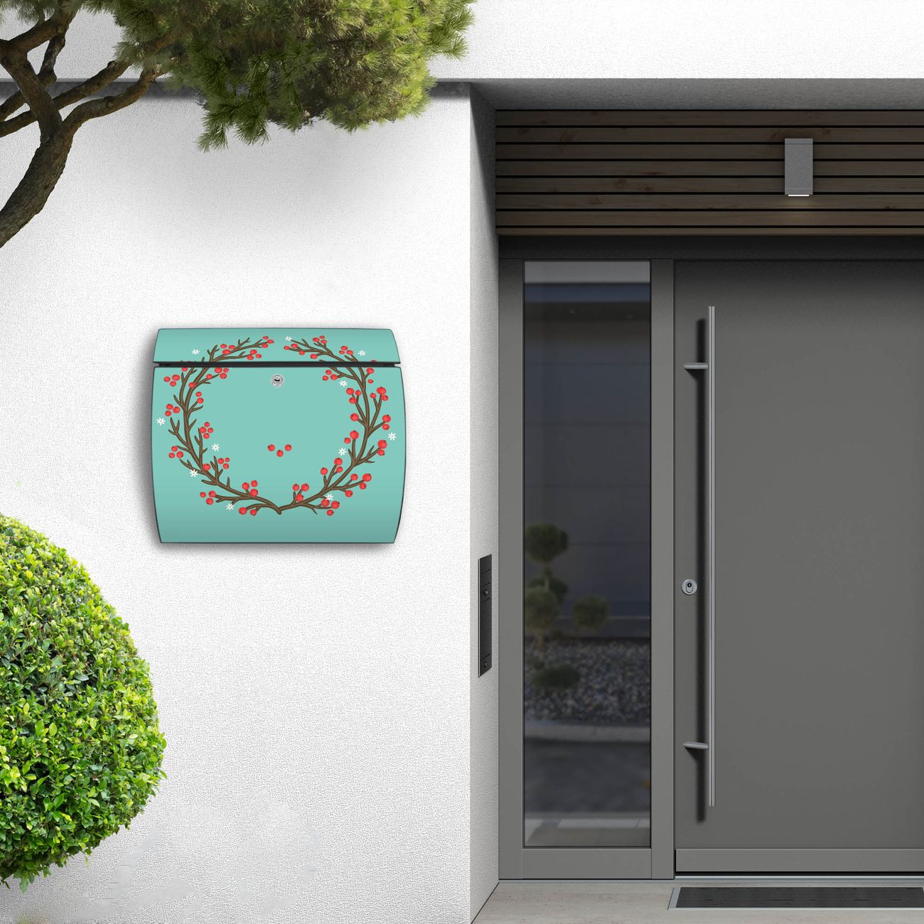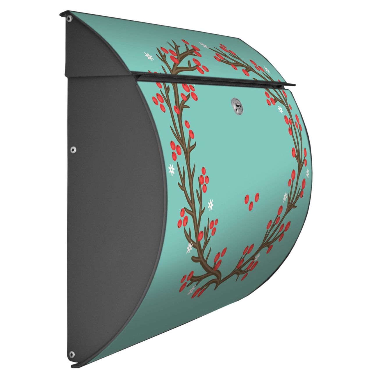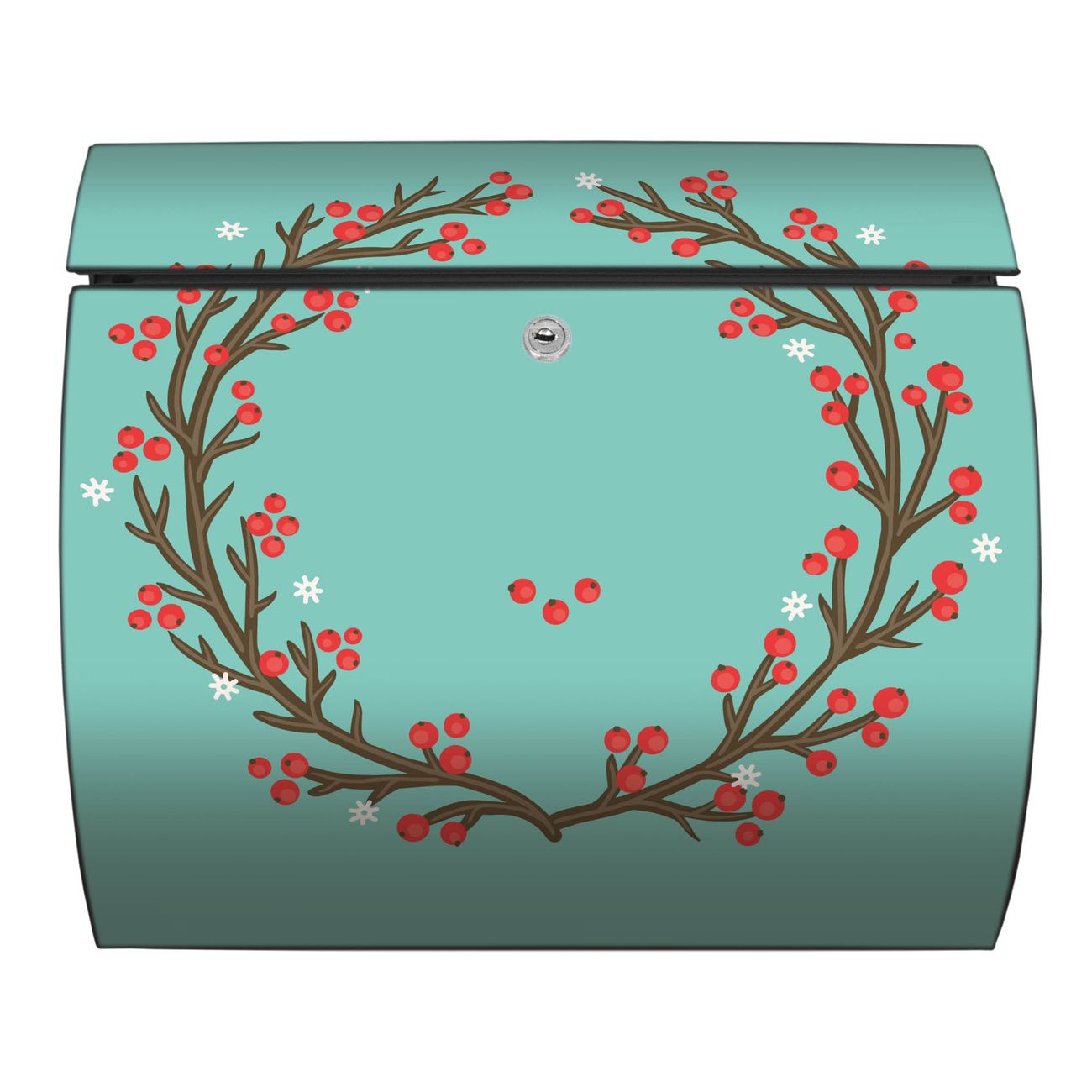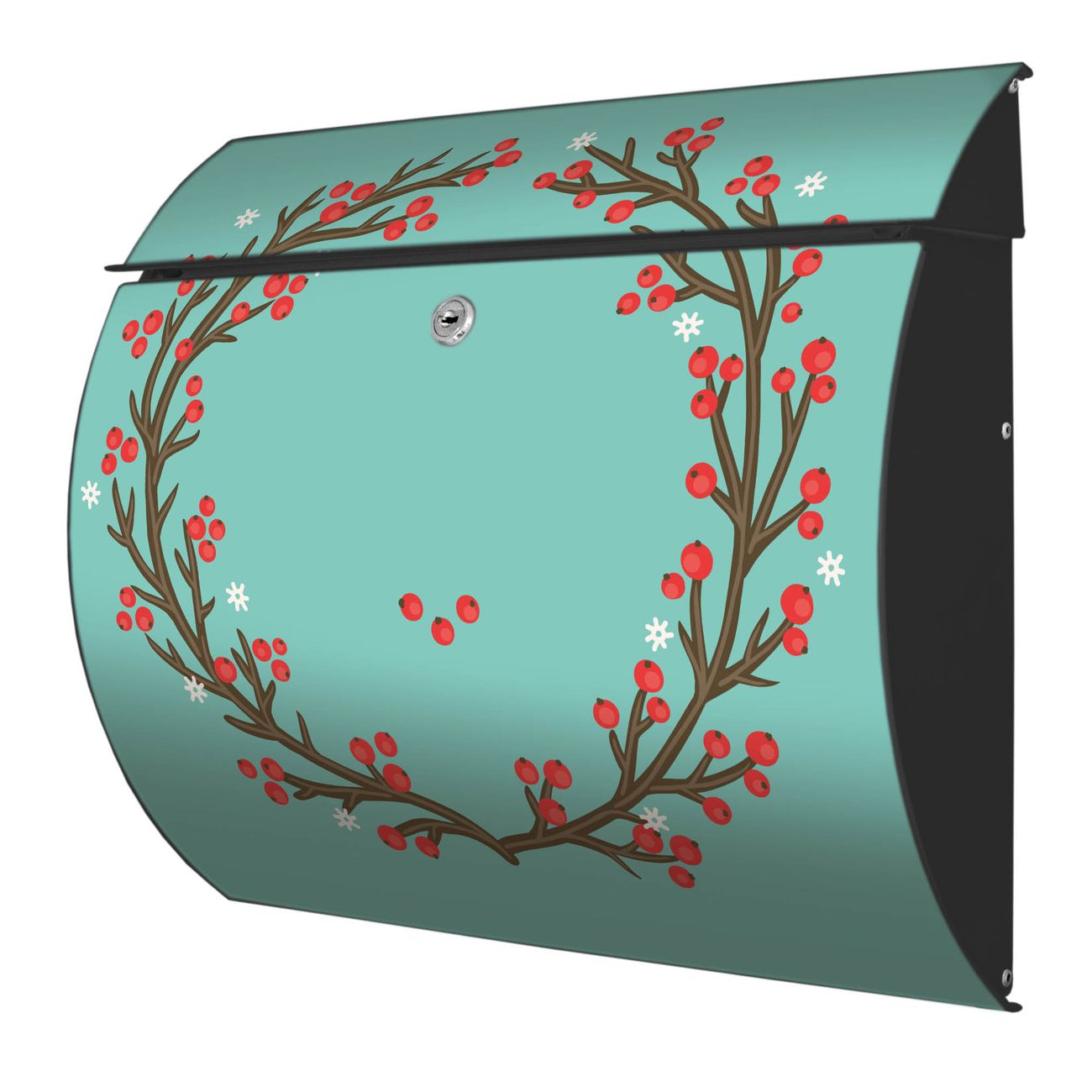 FUNKTION: DESIGN: Das Burg Wächter Modell Toscana mit Motiv Weihnachtsranke hat ein sehr ansprechendes und zeitloses Design und ist besonderes wetterfest. Heben Sie Sich von der tristen grauen Masse ab, ohne auf Funktionalität zu verzichten. Wir bieten Ihnen ebenfalls Namensschilder, bereits beschriftet oder frei zu beschriften, und verschiedene selbst gestaltete Bitte-Keine-Werbung-Aufkleber. DETAILS: Der Postkasten besteht aus vollflächig verzinktem Stahl welcher in Anthrazit oder Weiß lackiert wurde oder aus Edelstahl (je nach gewählter Variante). Das Motiv besteht aus einer wetter- und UV-festen Folie, die mit einem Schutzlaminat überzogen ist, durch die Ihren Briefkasten zusätzlich vor Kratzern geschützt ist und auf den Briefkasten kaschiert wurde. Sie erhalten zu Ihrem neuen Design Briefkasten 2 Schlüssel sowie das passende Montagematerial. BANJADO: Ihr Briefkasten wird von Burg Wächter in Deutschland gefertigt und in unserer kleinen Manufaktur von Hand veredelt. Die Motivfolie ist lösungsmittelfrei und schutzlaminiert, dies sorgt für einen langen Halt. Wir legen großen Wert auf die Verbindung von Funktionalität und Design. Sie erhalten besondere Handarbeit aus Sachsen und Made in Germany.