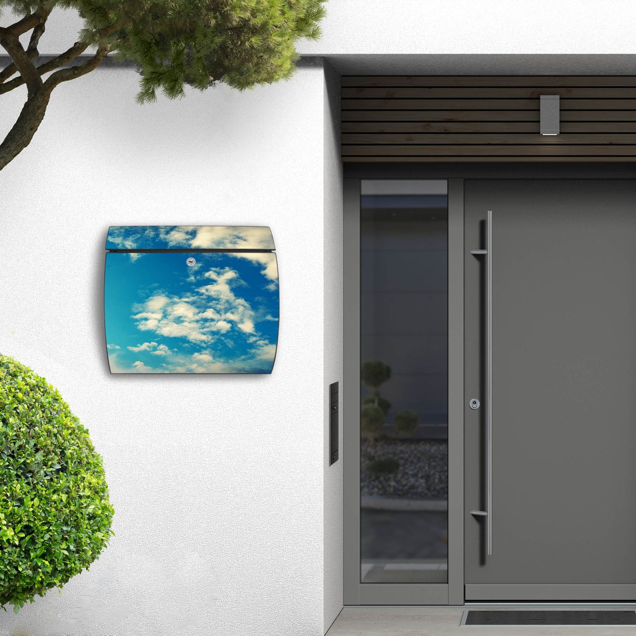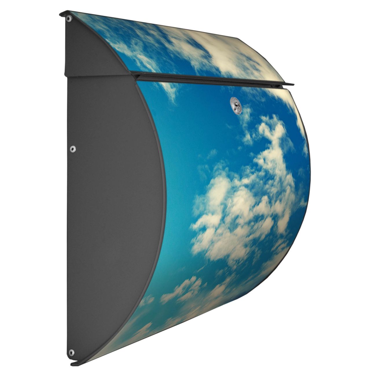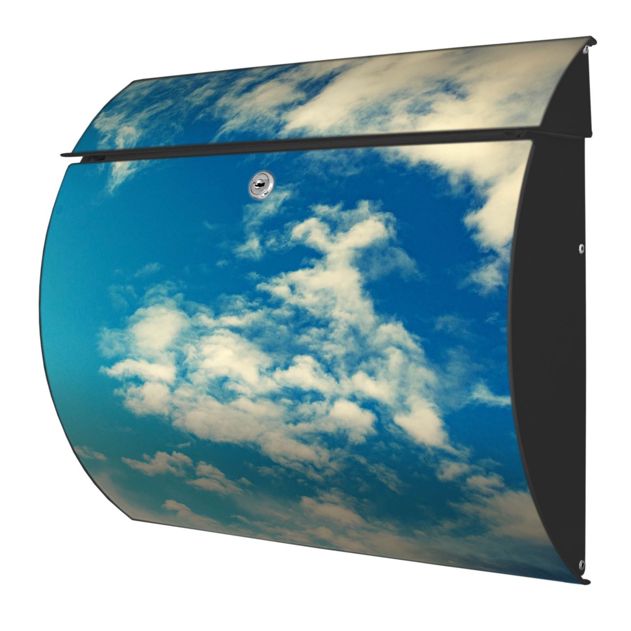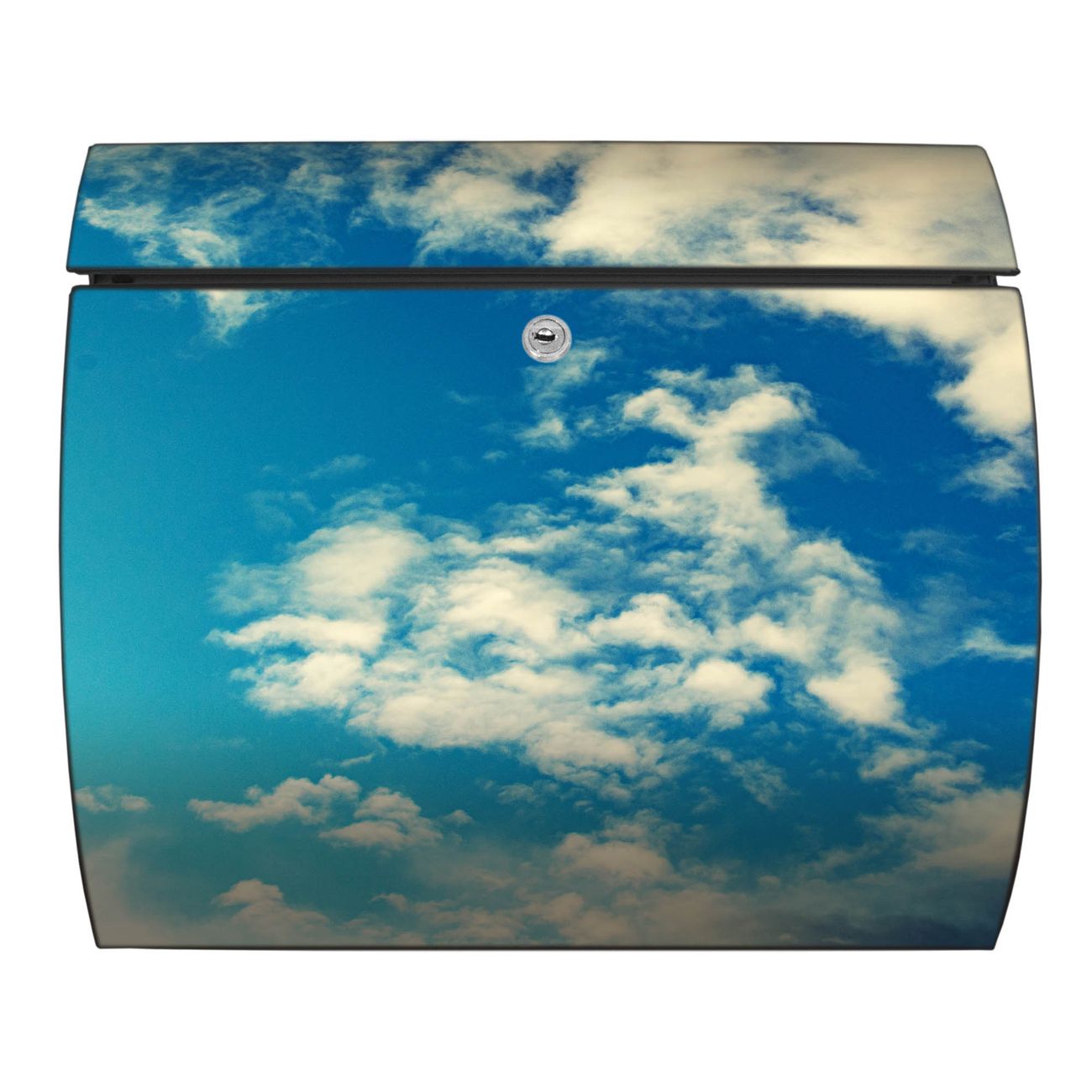 Der geschwungene Burg Wächter Briefkasten Toscana mit Motiv Wolken 5 bietet Ihnen mit seinem großen Fassungsvermögen genügend Platz auch für große A4 Sendungen. Auf Wunsch können Sie bei uns den passenden Standfuß bestellen und so aus dem Wandbriefkasten einen Standbriefkasten machen. Der integrierte Öffnungsstopp ermöglicht eine einfache Handhabung beim Entnehmen der Post.