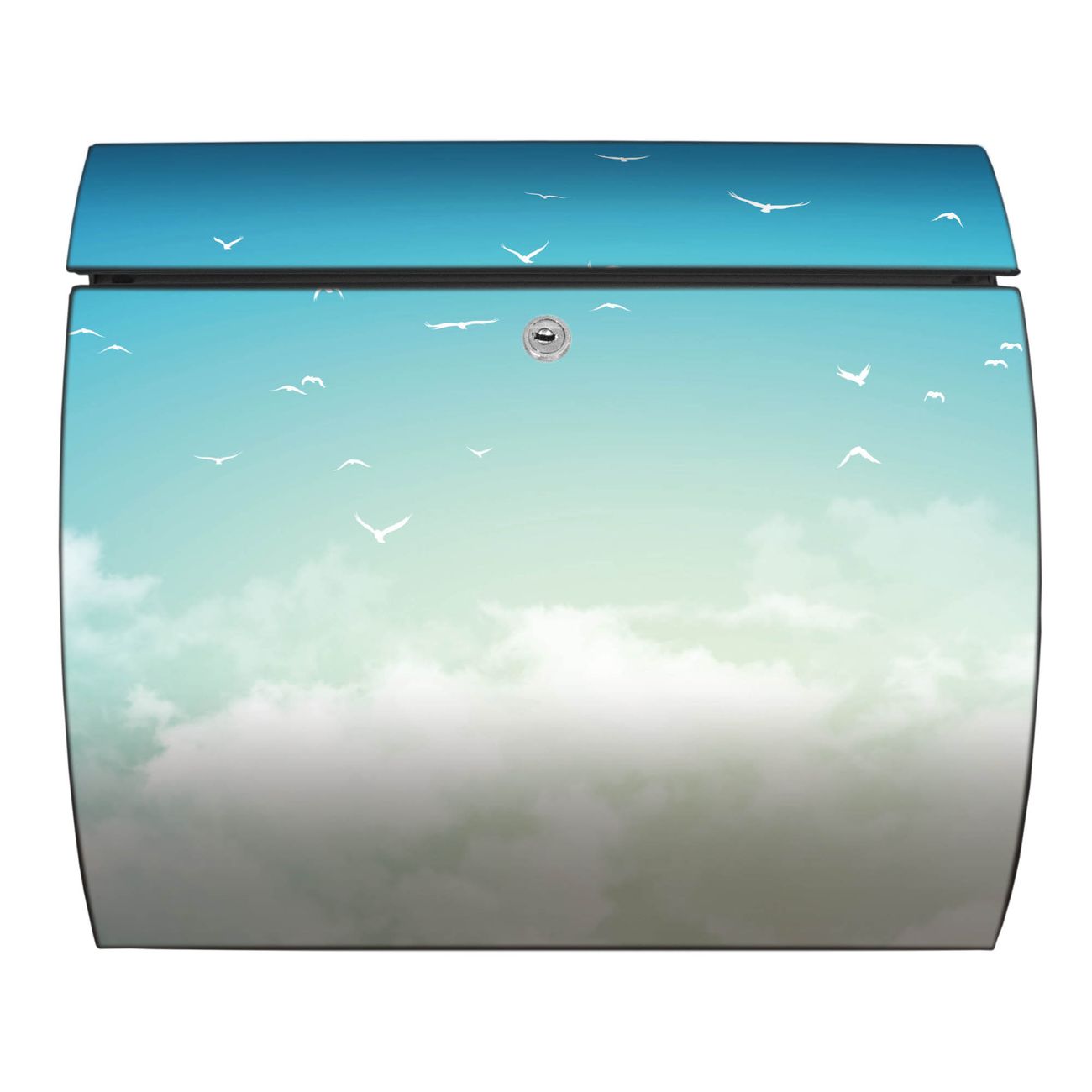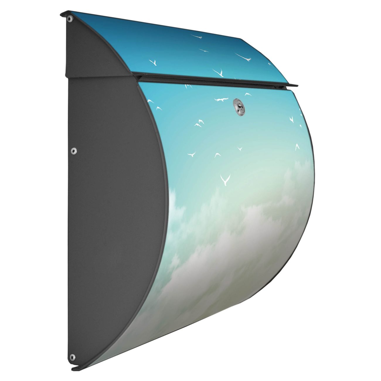 FUNKTION: DESIGN: Das Burg Wächter Modell Toscana mit Motiv Wolken 8 hat ein sehr ansprechendes und zeitloses Design und ist besonderes wetterfest. Heben Sie Sich von der tristen grauen Masse ab, ohne auf Funktionalität zu verzichten. Wir bieten Ihnen ebenfalls Namensschilder, bereits beschriftet oder frei zu beschriften, und verschiedene selbst gestaltete Bitte-Keine-Werbung-Aufkleber. DETAILS: Der Postkasten besteht aus vollflächig verzinktem Stahl welcher in Anthrazit oder Weiß lackiert wurde oder aus Edelstahl (je nach gewählter Variante). Das Motiv besteht aus einer wetter- und UV-festen Folie, die mit einem Schutzlaminat überzogen ist, durch die Ihren Briefkasten zusätzlich vor Kratzern geschützt ist und auf den Briefkasten kaschiert wurde. Sie erhalten zu Ihrem neuen Design Briefkasten 2 Schlüssel sowie das passende Montagematerial. BANJADO: Ihr Briefkasten wird von Burg Wächter in Deutschland gefertigt und in unserer kleinen Manufaktur von Hand veredelt. Die Motivfolie ist lösungsmittelfrei und schutzlaminiert, dies sorgt für einen langen Halt. Wir legen großen Wert auf die Verbindung von Funktionalität und Design. Sie erhalten besondere Handarbeit aus Sachsen und Made in Germany.