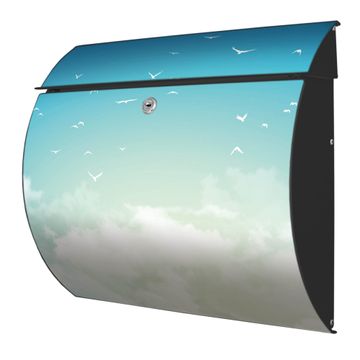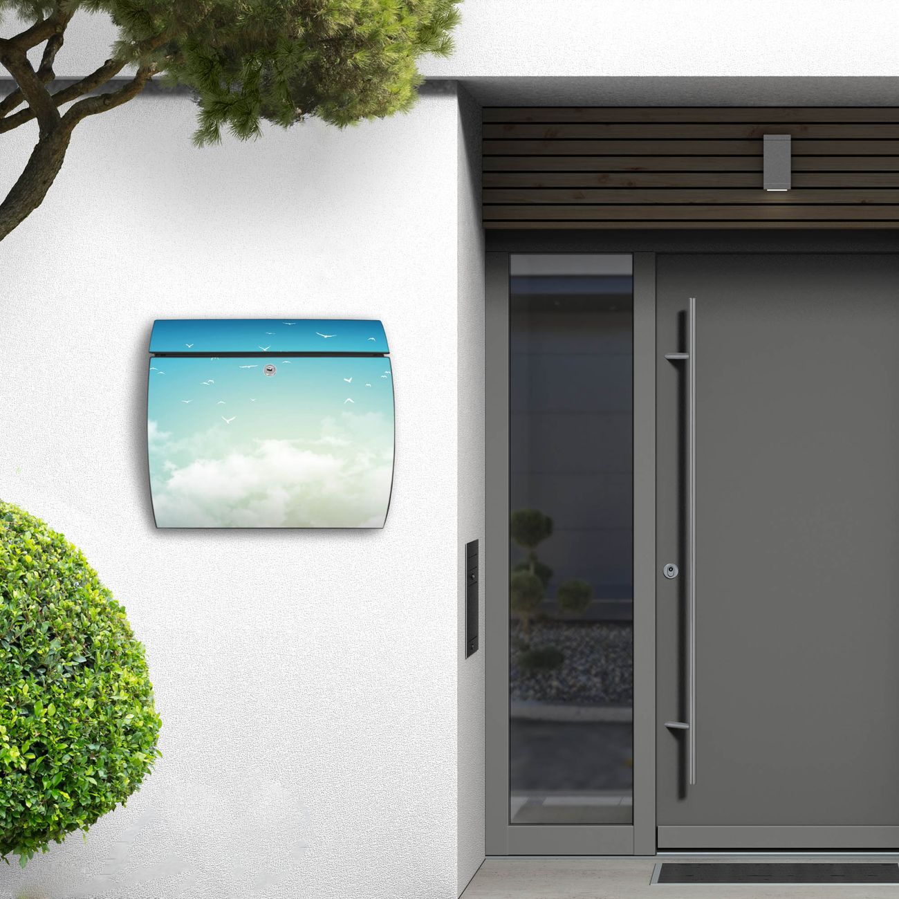 Der geschwungene Burg Wächter Briefkasten Toscana mit Motiv Wolken 8 bietet Ihnen mit seinem großen Fassungsvermögen genügend Platz auch für große A4 Sendungen. Auf Wunsch können Sie bei uns den passenden Standfuß bestellen und so aus dem Wandbriefkasten einen Standbriefkasten machen. Der integrierte Öffnungsstopp ermöglicht eine einfache Handhabung beim Entnehmen der Post.
