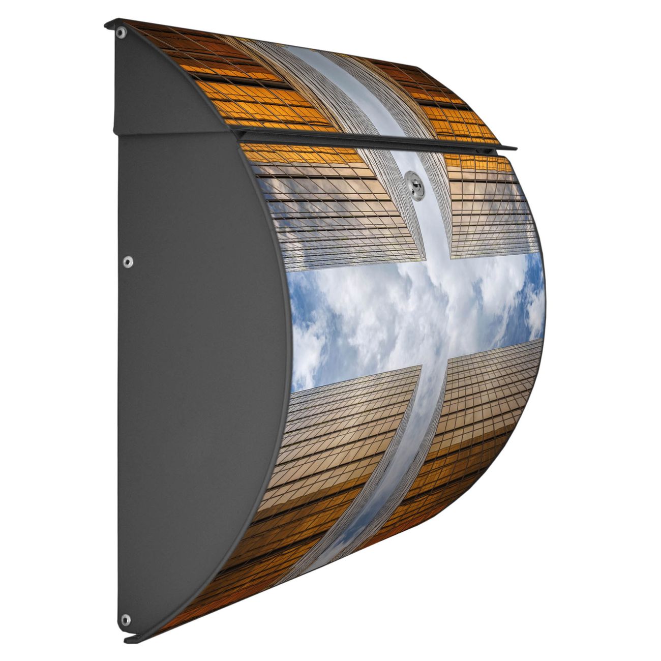 Der geschwungene Burg Wächter Briefkasten Toscana mit Motiv Wolkenkratzer 2 bietet Ihnen mit seinem großen Fassungsvermögen genügend Platz auch für große A4 Sendungen. Auf Wunsch können Sie bei uns den passenden Standfuß bestellen und so aus dem Wandbriefkasten einen Standbriefkasten machen. Der integrierte Öffnungsstopp ermöglicht eine einfache Handhabung beim Entnehmen der Post.