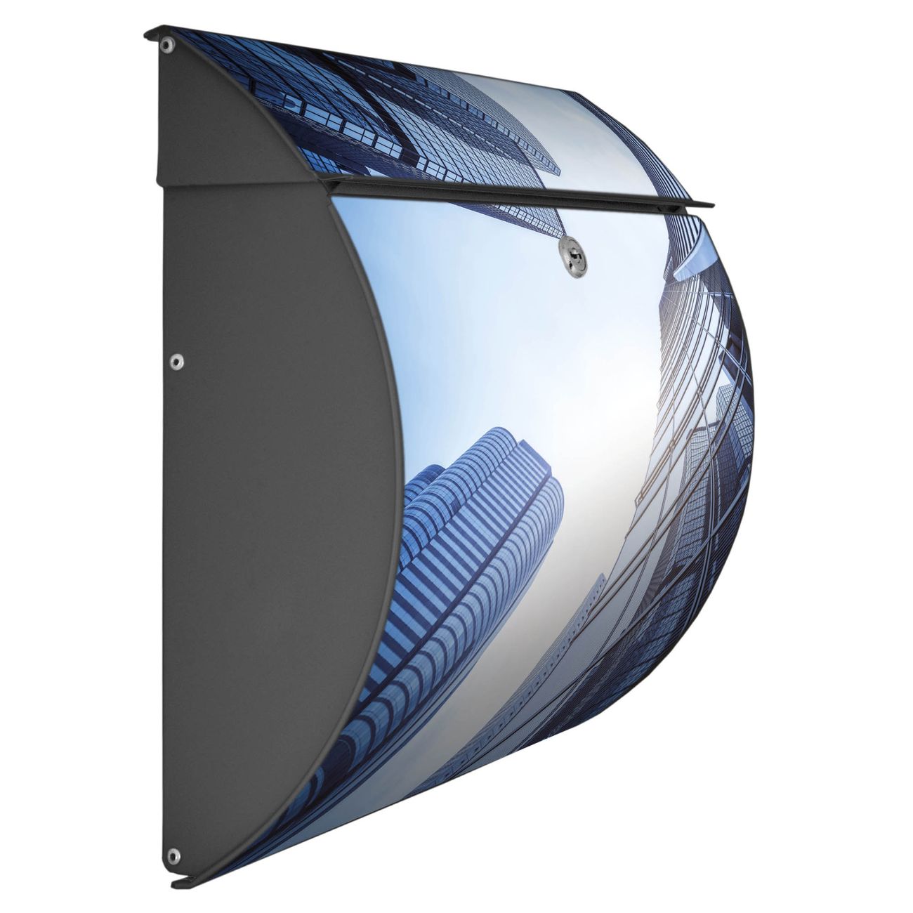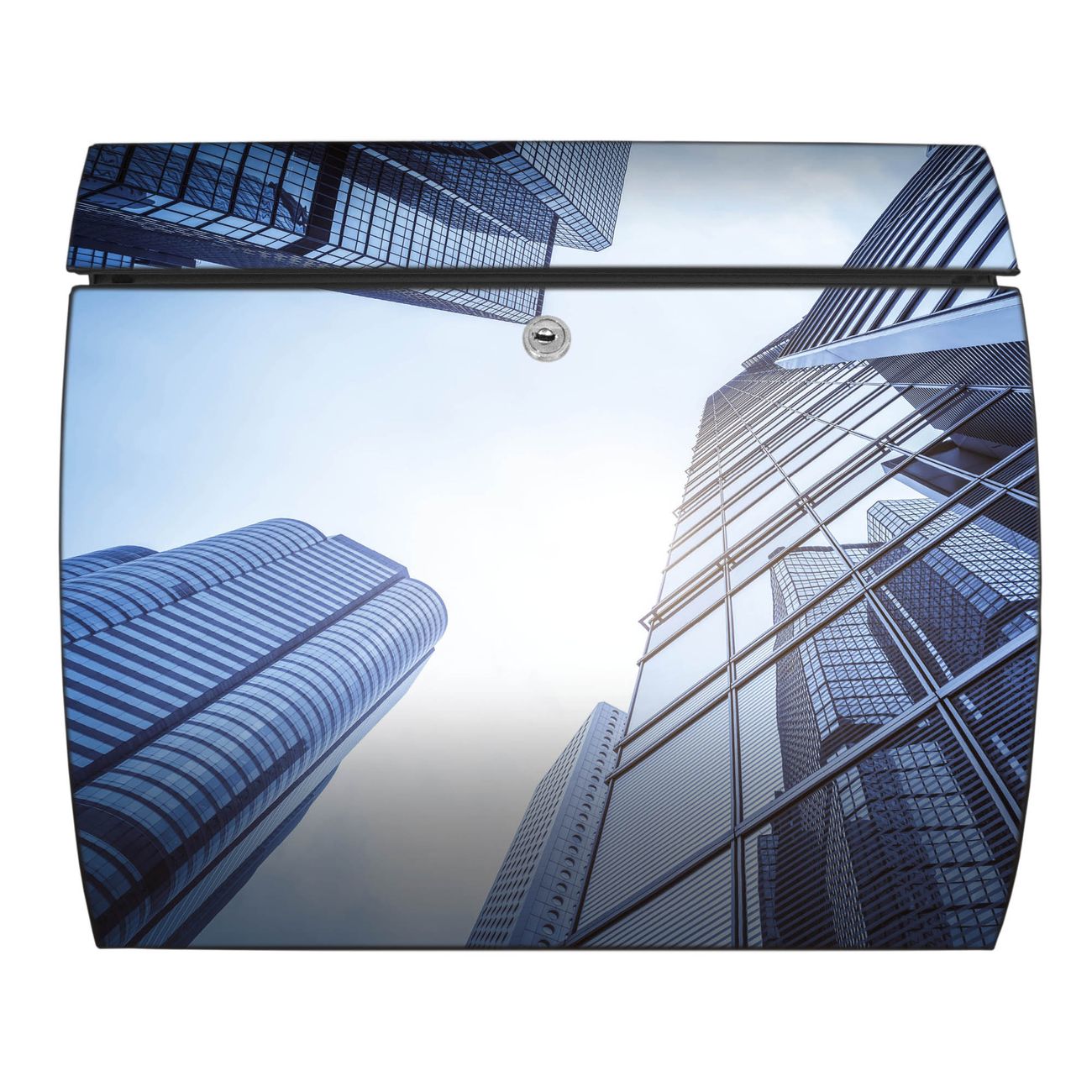 FUNKTION: DESIGN: Das Burg Wächter Modell Toscana mit Motiv Wolkenkratzer hat ein sehr ansprechendes und zeitloses Design und ist besonderes wetterfest. Heben Sie Sich von der tristen grauen Masse ab, ohne auf Funktionalität zu verzichten. Wir bieten Ihnen ebenfalls Namensschilder, bereits beschriftet oder frei zu beschriften, und verschiedene selbst gestaltete Bitte-Keine-Werbung-Aufkleber. DETAILS: Der Postkasten besteht aus vollflächig verzinktem Stahl welcher in Anthrazit oder Weiß lackiert wurde oder aus Edelstahl (je nach gewählter Variante). Das Motiv besteht aus einer wetter- und UV-festen Folie, die mit einem Schutzlaminat überzogen ist, durch die Ihren Briefkasten zusätzlich vor Kratzern geschützt ist und auf den Briefkasten kaschiert wurde. Sie erhalten zu Ihrem neuen Design Briefkasten 2 Schlüssel sowie das passende Montagematerial. BANJADO: Ihr Briefkasten wird von Burg Wächter in Deutschland gefertigt und in unserer kleinen Manufaktur von Hand veredelt. Die Motivfolie ist lösungsmittelfrei und schutzlaminiert, dies sorgt für einen langen Halt. Wir legen großen Wert auf die Verbindung von Funktionalität und Design. Sie erhalten besondere Handarbeit aus Sachsen und Made in Germany.
