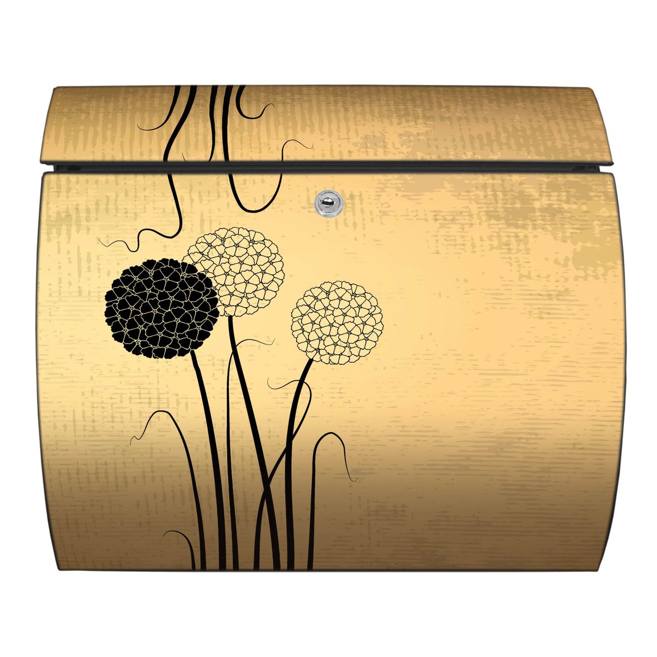 FUNKTION: DESIGN: Das Burg Wächter Modell Toscana mit Motiv Zwiebel Vintage hat ein sehr ansprechendes und zeitloses Design und ist besonderes wetterfest. Heben Sie Sich von der tristen grauen Masse ab, ohne auf Funktionalität zu verzichten. Wir bieten Ihnen ebenfalls Namensschilder, bereits beschriftet oder frei zu beschriften, und verschiedene selbst gestaltete Bitte-Keine-Werbung-Aufkleber. DETAILS: Der Postkasten besteht aus vollflächig verzinktem Stahl welcher in Anthrazit oder Weiß lackiert wurde oder aus Edelstahl (je nach gewählter Variante). Das Motiv besteht aus einer wetter- und UV-festen Folie, die mit einem Schutzlaminat überzogen ist, durch die Ihren Briefkasten zusätzlich vor Kratzern geschützt ist und auf den Briefkasten kaschiert wurde. Sie erhalten zu Ihrem neuen Design Briefkasten 2 Schlüssel sowie das passende Montagematerial. BANJADO: Ihr Briefkasten wird von Burg Wächter in Deutschland gefertigt und in unserer kleinen Manufaktur von Hand veredelt. Die Motivfolie ist lösungsmittelfrei und schutzlaminiert, dies sorgt für einen langen Halt. Wir legen großen Wert auf die Verbindung von Funktionalität und Design. Sie erhalten besondere Handarbeit aus Sachsen und Made in Germany.