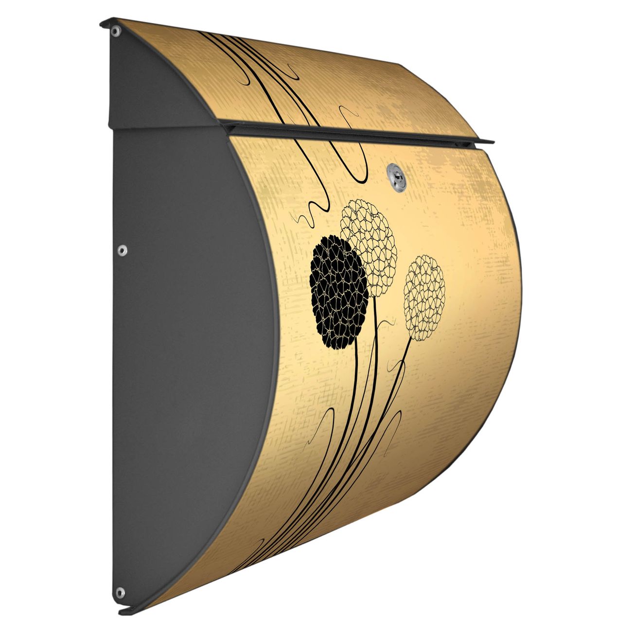 Der geschwungene Burg Wächter Briefkasten Toscana mit Motiv Zwiebel Vintage bietet Ihnen mit seinem großen Fassungsvermögen genügend Platz auch für große A4 Sendungen. Auf Wunsch können Sie bei uns den passenden Standfuß bestellen und so aus dem Wandbriefkasten einen Standbriefkasten machen. Der integrierte Öffnungsstopp ermöglicht eine einfache Handhabung beim Entnehmen der Post.