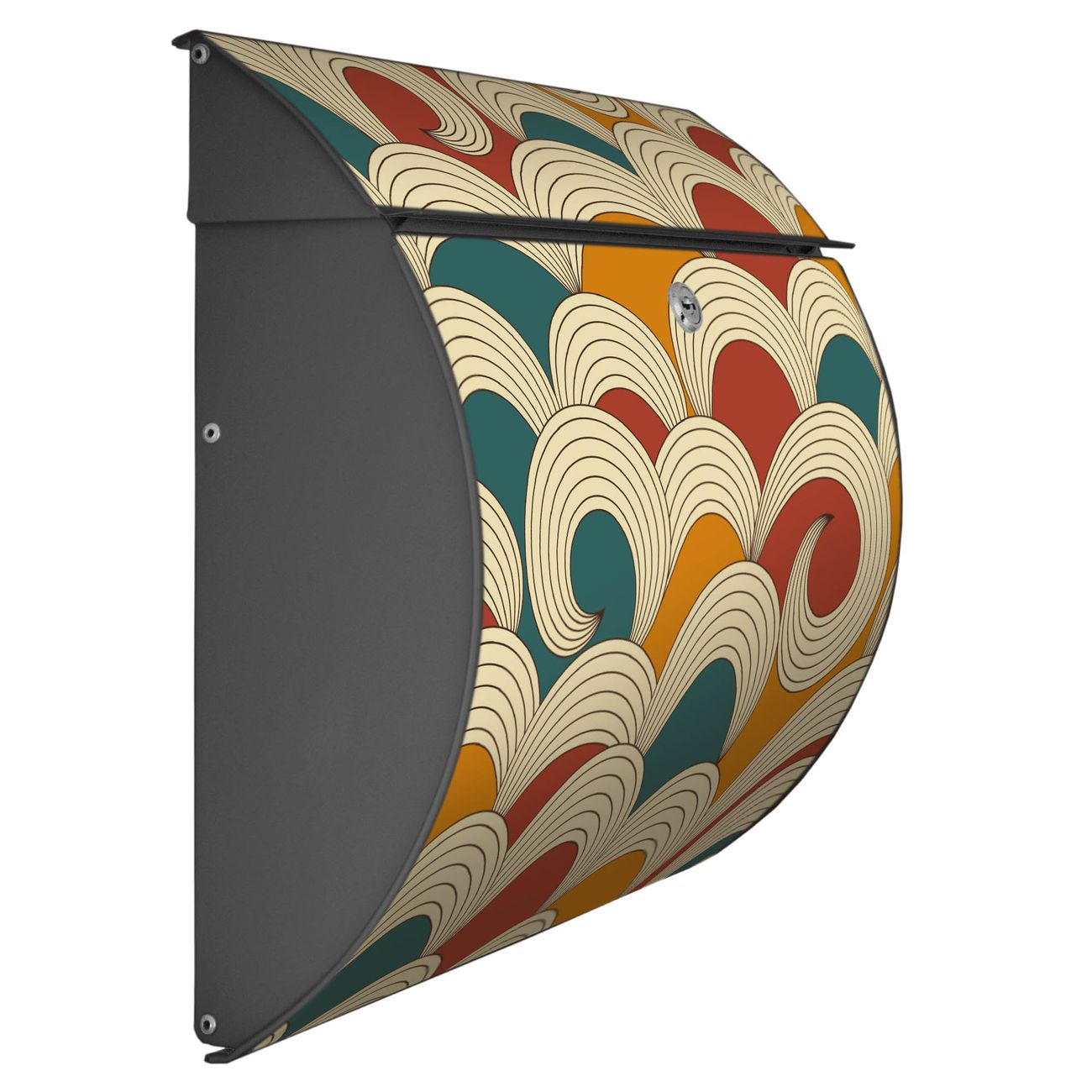 Der geschwungene Burg Wächter Briefkasten Toscana mit Motiv Abstract Waves bietet Ihnen mit seinem großen Fassungsvermögen genügend Platz auch für große A4 Sendungen. Auf Wunsch können Sie bei uns den passenden Standfuß bestellen und so aus dem Wandbriefkasten einen Standbriefkasten machen. Der integrierte Öffnungsstopp ermöglicht eine einfache Handhabung beim Entnehmen der Post.