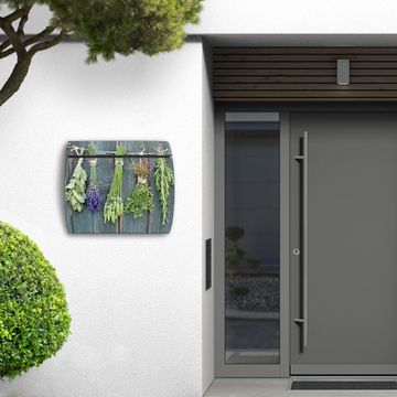 FUNKTION: DESIGN: Das Burg Wächter Modell Toscana mit Motiv Acht Kräuter hat ein sehr ansprechendes und zeitloses Design und ist besonderes wetterfest. Heben Sie Sich von der tristen grauen Masse ab, ohne auf Funktionalität zu verzichten. Wir bieten Ihnen ebenfalls Namensschilder, bereits beschriftet oder frei zu beschriften, und verschiedene selbst gestaltete Bitte-Keine-Werbung-Aufkleber. DETAILS: Der Postkasten besteht aus vollflächig verzinktem Stahl welcher in Anthrazit oder Weiß lackiert wurde oder aus Edelstahl (je nach gewählter Variante). Das Motiv besteht aus einer wetter- und UV-festen Folie, die mit einem Schutzlaminat überzogen ist, durch die Ihren Briefkasten zusätzlich vor Kratzern geschützt ist und auf den Briefkasten kaschiert wurde. Sie erhalten zu Ihrem neuen Design Briefkasten 2 Schlüssel sowie das passende Montagematerial. BANJADO: Ihr Briefkasten wird von Burg Wächter in Deutschland gefertigt und in unserer kleinen Manufaktur von Hand veredelt. Die Motivfolie ist lösungsmittelfrei und schutzlaminiert, dies sorgt für einen langen Halt. Wir legen großen Wert auf die Verbindung von Funktionalität und Design. Sie erhalten besondere Handarbeit aus Sachsen und Made in Germany.