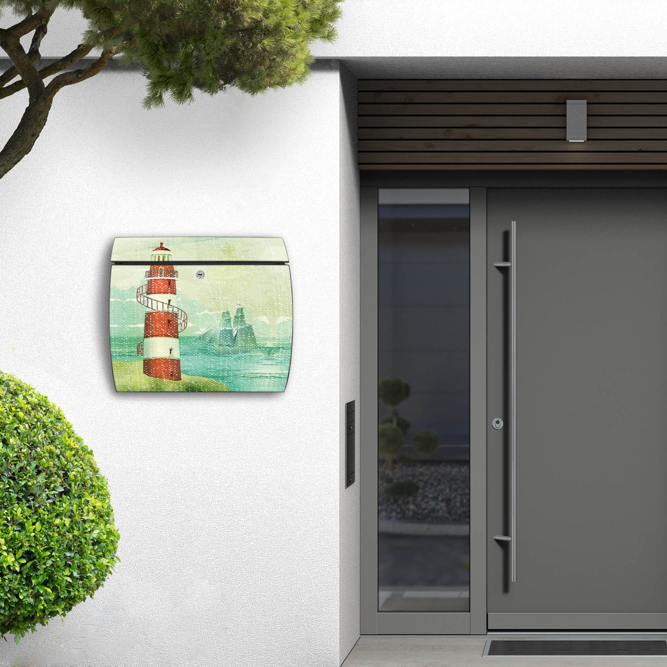 FUNKTION: DESIGN: Das Burg Wächter Modell Toscana mit Motiv Alter Leuchtturm hat ein sehr ansprechendes und zeitloses Design und ist besonderes wetterfest. Heben Sie Sich von der tristen grauen Masse ab, ohne auf Funktionalität zu verzichten. Wir bieten Ihnen ebenfalls Namensschilder, bereits beschriftet oder frei zu beschriften, und verschiedene selbst gestaltete Bitte-Keine-Werbung-Aufkleber. DETAILS: Der Postkasten besteht aus vollflächig verzinktem Stahl welcher in Anthrazit oder Weiß lackiert wurde oder aus Edelstahl (je nach gewählter Variante). Das Motiv besteht aus einer wetter- und UV-festen Folie, die mit einem Schutzlaminat überzogen ist, durch die Ihren Briefkasten zusätzlich vor Kratzern geschützt ist und auf den Briefkasten kaschiert wurde. Sie erhalten zu Ihrem neuen Design Briefkasten 2 Schlüssel sowie das passende Montagematerial. BANJADO: Ihr Briefkasten wird von Burg Wächter in Deutschland gefertigt und in unserer kleinen Manufaktur von Hand veredelt. Die Motivfolie ist lösungsmittelfrei und schutzlaminiert, dies sorgt für einen langen Halt. Wir legen großen Wert auf die Verbindung von Funktionalität und Design. Sie erhalten besondere Handarbeit aus Sachsen und Made in Germany.