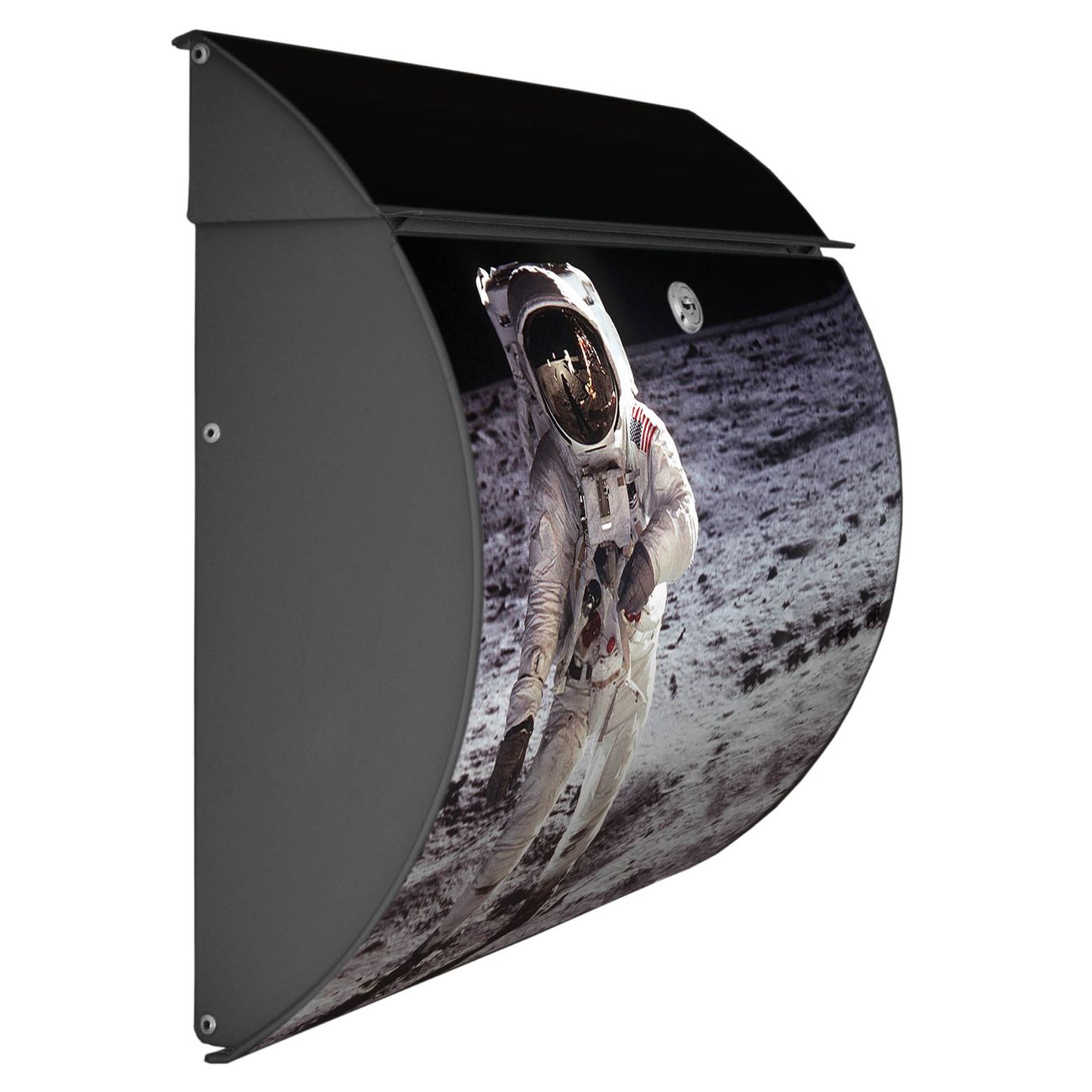 Der geschwungene Burg Wächter Briefkasten Toscana mit Motiv Astronaut bietet Ihnen mit seinem großen Fassungsvermögen genügend Platz auch für große A4 Sendungen. Auf Wunsch können Sie bei uns den passenden Standfuß bestellen und so aus dem Wandbriefkasten einen Standbriefkasten machen. Der integrierte Öffnungsstopp ermöglicht eine einfache Handhabung beim Entnehmen der Post.