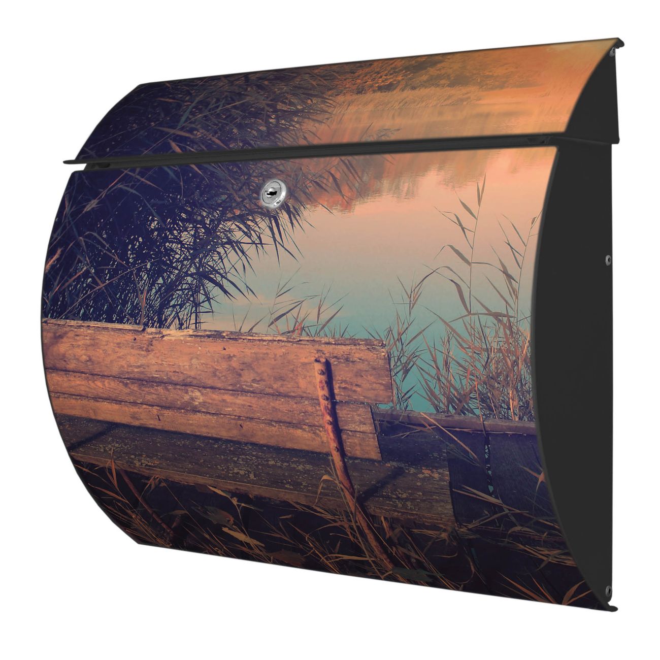 Der geschwungene Burg Wächter Briefkasten Toscana mit Motiv Bank Am See bietet Ihnen mit seinem großen Fassungsvermögen genügend Platz auch für große A4 Sendungen. Auf Wunsch können Sie bei uns den passenden Standfuß bestellen und so aus dem Wandbriefkasten einen Standbriefkasten machen. Der integrierte Öffnungsstopp ermöglicht eine einfache Handhabung beim Entnehmen der Post.