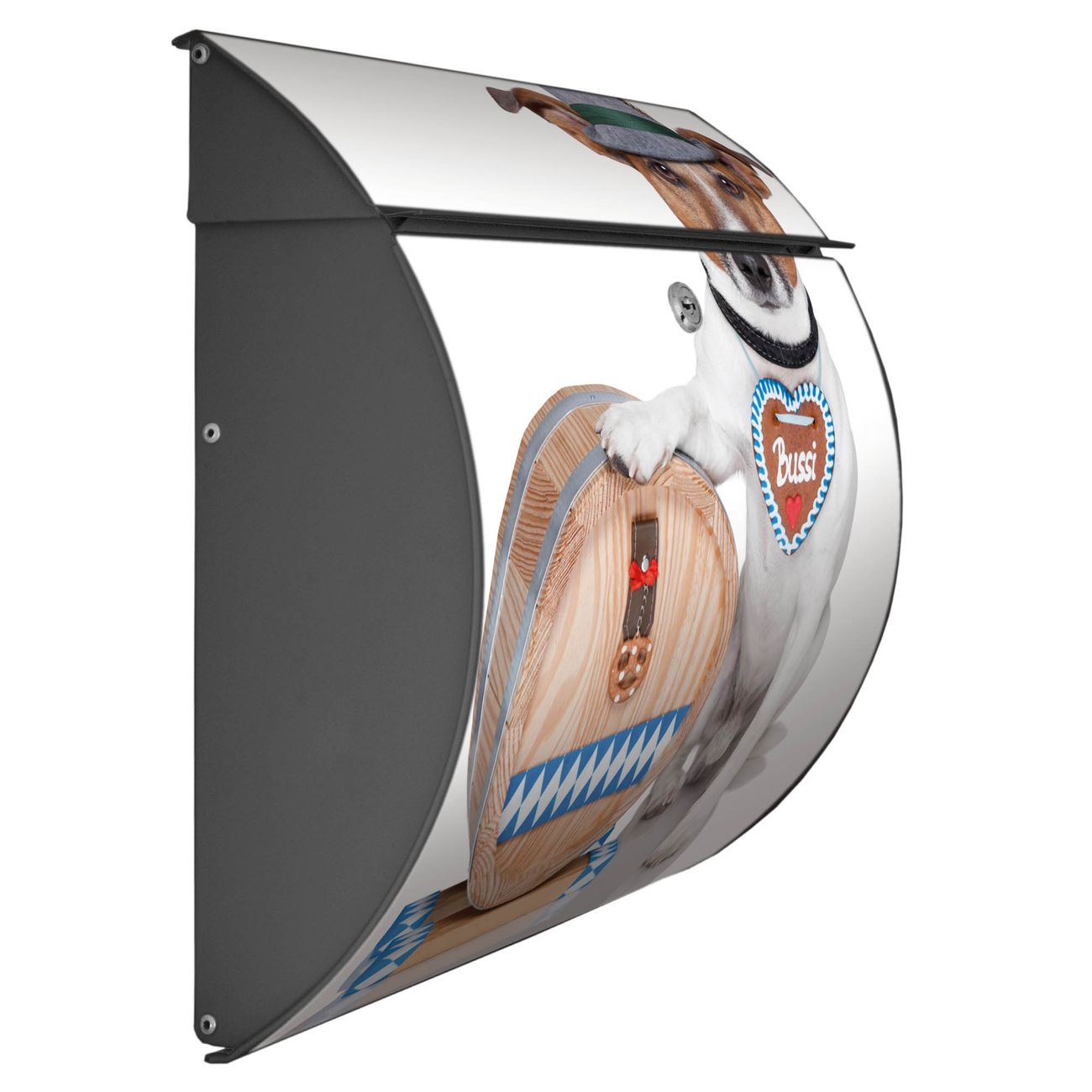 Der geschwungene Burg Wächter Briefkasten Toscana mit Motiv Bayer Jack Russel bietet Ihnen mit seinem großen Fassungsvermögen genügend Platz auch für große A4 Sendungen. Auf Wunsch können Sie bei uns den passenden Standfuß bestellen und so aus dem Wandbriefkasten einen Standbriefkasten machen. Der integrierte Öffnungsstopp ermöglicht eine einfache Handhabung beim Entnehmen der Post.