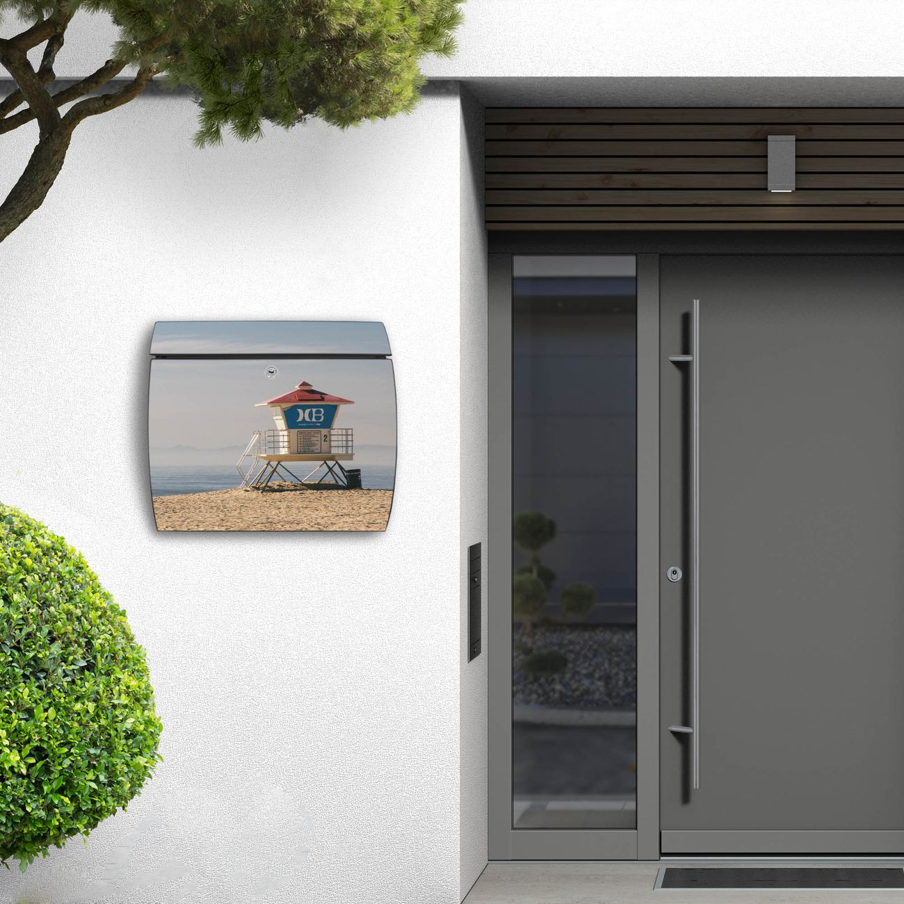 FUNKTION: DESIGN: Das Burg Wächter Modell Toscana mit Motiv Beach Section hat ein sehr ansprechendes und zeitloses Design und ist besonderes wetterfest. Heben Sie Sich von der tristen grauen Masse ab, ohne auf Funktionalität zu verzichten. Wir bieten Ihnen ebenfalls Namensschilder, bereits beschriftet oder frei zu beschriften, und verschiedene selbst gestaltete Bitte-Keine-Werbung-Aufkleber. DETAILS: Der Postkasten besteht aus vollflächig verzinktem Stahl welcher in Anthrazit oder Weiß lackiert wurde oder aus Edelstahl (je nach gewählter Variante). Das Motiv besteht aus einer wetter- und UV-festen Folie, die mit einem Schutzlaminat überzogen ist, durch die Ihren Briefkasten zusätzlich vor Kratzern geschützt ist und auf den Briefkasten kaschiert wurde. Sie erhalten zu Ihrem neuen Design Briefkasten 2 Schlüssel sowie das passende Montagematerial. BANJADO: Ihr Briefkasten wird von Burg Wächter in Deutschland gefertigt und in unserer kleinen Manufaktur von Hand veredelt. Die Motivfolie ist lösungsmittelfrei und schutzlaminiert, dies sorgt für einen langen Halt. Wir legen großen Wert auf die Verbindung von Funktionalität und Design. Sie erhalten besondere Handarbeit aus Sachsen und Made in Germany.