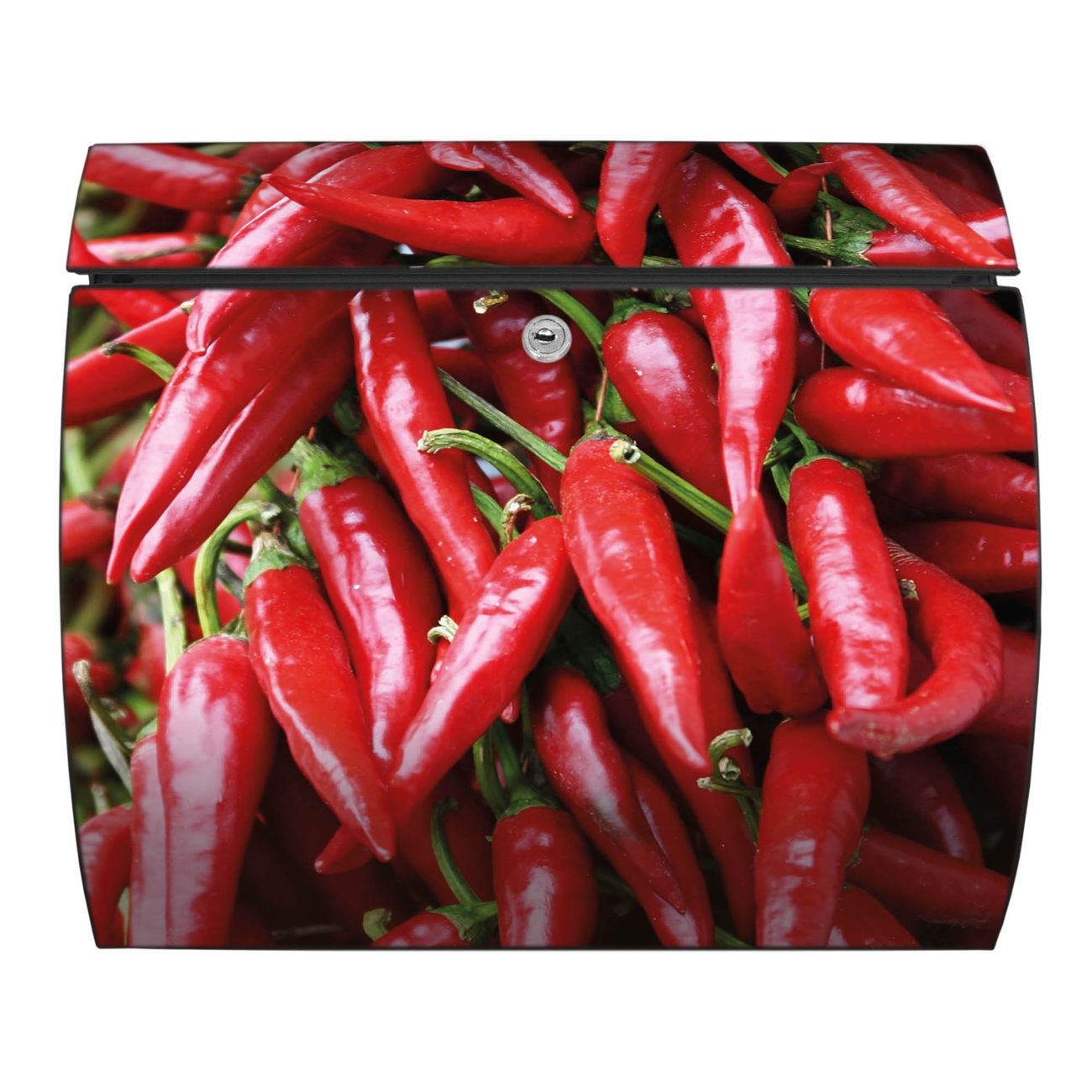 FUNKTION: DESIGN: Das Burg Wächter Modell Toscana mit Motiv Chilli hat ein sehr ansprechendes und zeitloses Design und ist besonderes wetterfest. Heben Sie Sich von der tristen grauen Masse ab, ohne auf Funktionalität zu verzichten. Wir bieten Ihnen ebenfalls Namensschilder, bereits beschriftet oder frei zu beschriften, und verschiedene selbst gestaltete Bitte-Keine-Werbung-Aufkleber. DETAILS: Der Postkasten besteht aus vollflächig verzinktem Stahl welcher in Anthrazit oder Weiß lackiert wurde oder aus Edelstahl (je nach gewählter Variante). Das Motiv besteht aus einer wetter- und UV-festen Folie, die mit einem Schutzlaminat überzogen ist, durch die Ihren Briefkasten zusätzlich vor Kratzern geschützt ist und auf den Briefkasten kaschiert wurde. Sie erhalten zu Ihrem neuen Design Briefkasten 2 Schlüssel sowie das passende Montagematerial. BANJADO: Ihr Briefkasten wird von Burg Wächter in Deutschland gefertigt und in unserer kleinen Manufaktur von Hand veredelt. Die Motivfolie ist lösungsmittelfrei und schutzlaminiert, dies sorgt für einen langen Halt. Wir legen großen Wert auf die Verbindung von Funktionalität und Design. Sie erhalten besondere Handarbeit aus Sachsen und Made in Germany.