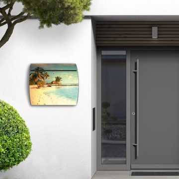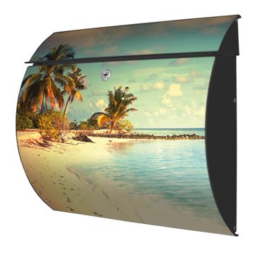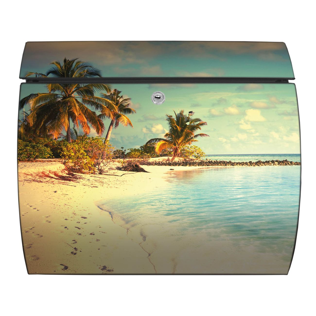 Der geschwungene Burg Wächter Briefkasten Toscana mit Motiv Einsame Insel bietet Ihnen mit seinem großen Fassungsvermögen genügend Platz auch für große A4 Sendungen. Auf Wunsch können Sie bei uns den passenden Standfuß bestellen und so aus dem Wandbriefkasten einen Standbriefkasten machen. Der integrierte Öffnungsstopp ermöglicht eine einfache Handhabung beim Entnehmen der Post.