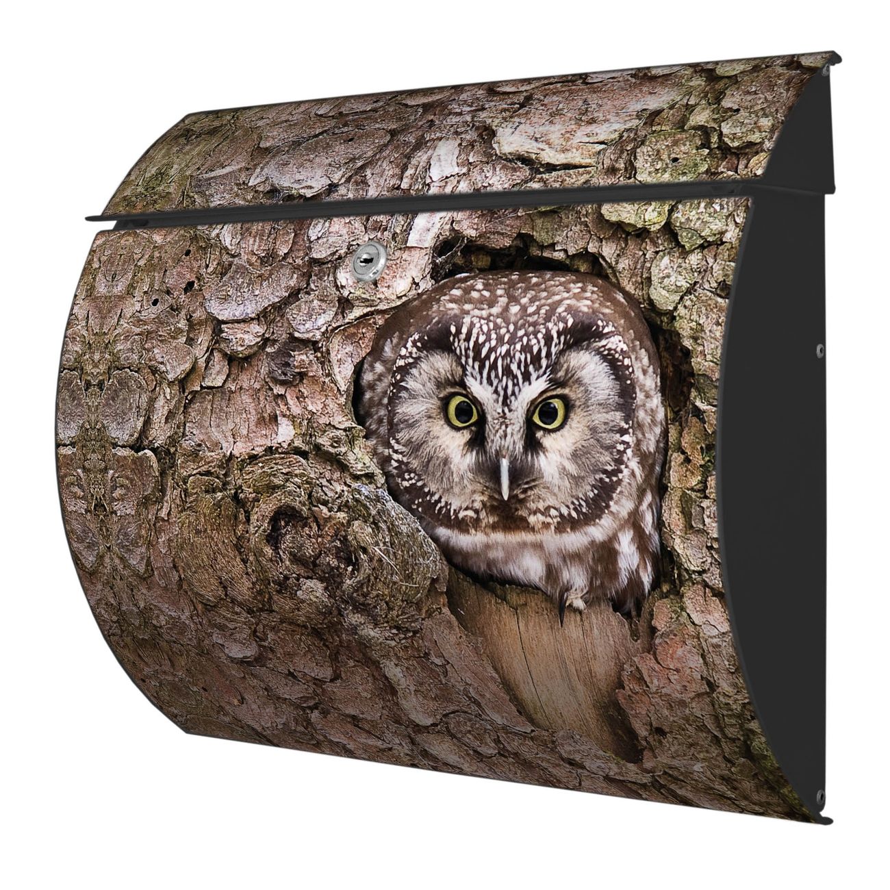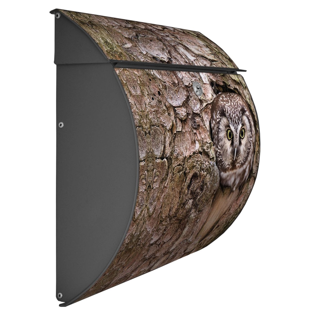 FUNKTION: DESIGN: Das Burg Wächter Modell Toscana mit Motiv Eule hat ein sehr ansprechendes und zeitloses Design und ist besonderes wetterfest. Heben Sie Sich von der tristen grauen Masse ab, ohne auf Funktionalität zu verzichten. Wir bieten Ihnen ebenfalls Namensschilder, bereits beschriftet oder frei zu beschriften, und verschiedene selbst gestaltete Bitte-Keine-Werbung-Aufkleber. DETAILS: Der Postkasten besteht aus vollflächig verzinktem Stahl welcher in Anthrazit oder Weiß lackiert wurde oder aus Edelstahl (je nach gewählter Variante). Das Motiv besteht aus einer wetter- und UV-festen Folie, die mit einem Schutzlaminat überzogen ist, durch die Ihren Briefkasten zusätzlich vor Kratzern geschützt ist und auf den Briefkasten kaschiert wurde. Sie erhalten zu Ihrem neuen Design Briefkasten 2 Schlüssel sowie das passende Montagematerial. BANJADO: Ihr Briefkasten wird von Burg Wächter in Deutschland gefertigt und in unserer kleinen Manufaktur von Hand veredelt. Die Motivfolie ist lösungsmittelfrei und schutzlaminiert, dies sorgt für einen langen Halt. Wir legen großen Wert auf die Verbindung von Funktionalität und Design. Sie erhalten besondere Handarbeit aus Sachsen und Made in Germany.