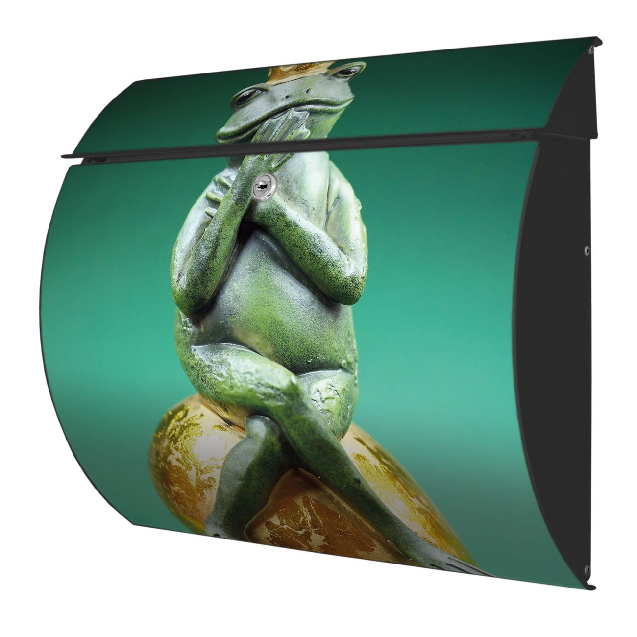 FUNKTION: DESIGN: Das Burg Wächter Modell Toscana mit Motiv Froschkönig hat ein sehr ansprechendes und zeitloses Design und ist besonderes wetterfest. Heben Sie Sich von der tristen grauen Masse ab, ohne auf Funktionalität zu verzichten. Wir bieten Ihnen ebenfalls Namensschilder, bereits beschriftet oder frei zu beschriften, und verschiedene selbst gestaltete Bitte-Keine-Werbung-Aufkleber. DETAILS: Der Postkasten besteht aus vollflächig verzinktem Stahl welcher in Anthrazit oder Weiß lackiert wurde oder aus Edelstahl (je nach gewählter Variante). Das Motiv besteht aus einer wetter- und UV-festen Folie, die mit einem Schutzlaminat überzogen ist, durch die Ihren Briefkasten zusätzlich vor Kratzern geschützt ist und auf den Briefkasten kaschiert wurde. Sie erhalten zu Ihrem neuen Design Briefkasten 2 Schlüssel sowie das passende Montagematerial. BANJADO: Ihr Briefkasten wird von Burg Wächter in Deutschland gefertigt und in unserer kleinen Manufaktur von Hand veredelt. Die Motivfolie ist lösungsmittelfrei und schutzlaminiert, dies sorgt für einen langen Halt. Wir legen großen Wert auf die Verbindung von Funktionalität und Design. Sie erhalten besondere Handarbeit aus Sachsen und Made in Germany.