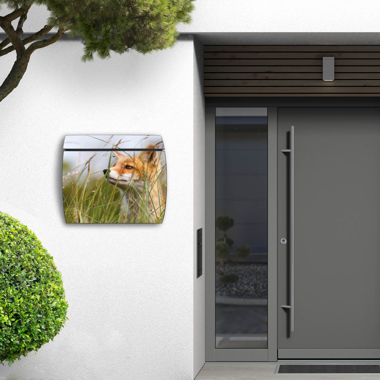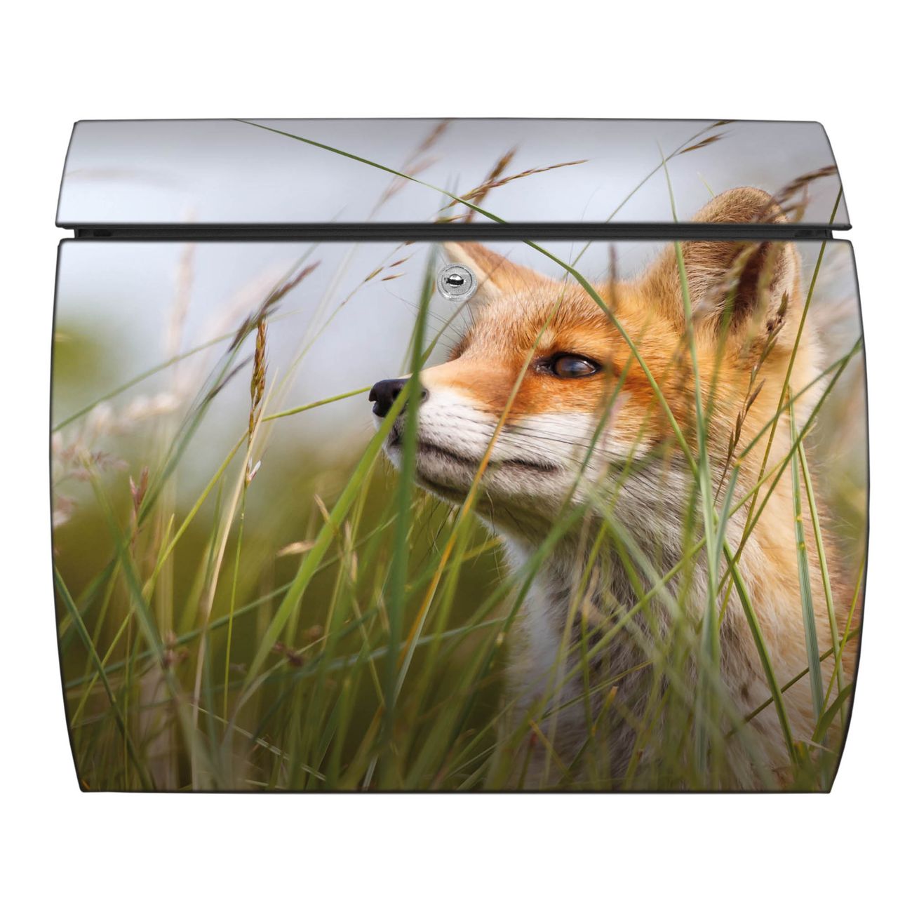 FUNKTION: DESIGN: Das Burg Wächter Modell Toscana mit Motiv Fuchs hat ein sehr ansprechendes und zeitloses Design und ist besonderes wetterfest. Heben Sie Sich von der tristen grauen Masse ab, ohne auf Funktionalität zu verzichten. Wir bieten Ihnen ebenfalls Namensschilder, bereits beschriftet oder frei zu beschriften, und verschiedene selbst gestaltete Bitte-Keine-Werbung-Aufkleber. DETAILS: Der Postkasten besteht aus vollflächig verzinktem Stahl welcher in Anthrazit oder Weiß lackiert wurde oder aus Edelstahl (je nach gewählter Variante). Das Motiv besteht aus einer wetter- und UV-festen Folie, die mit einem Schutzlaminat überzogen ist, durch die Ihren Briefkasten zusätzlich vor Kratzern geschützt ist und auf den Briefkasten kaschiert wurde. Sie erhalten zu Ihrem neuen Design Briefkasten 2 Schlüssel sowie das passende Montagematerial. BANJADO: Ihr Briefkasten wird von Burg Wächter in Deutschland gefertigt und in unserer kleinen Manufaktur von Hand veredelt. Die Motivfolie ist lösungsmittelfrei und schutzlaminiert, dies sorgt für einen langen Halt. Wir legen großen Wert auf die Verbindung von Funktionalität und Design. Sie erhalten besondere Handarbeit aus Sachsen und Made in Germany.