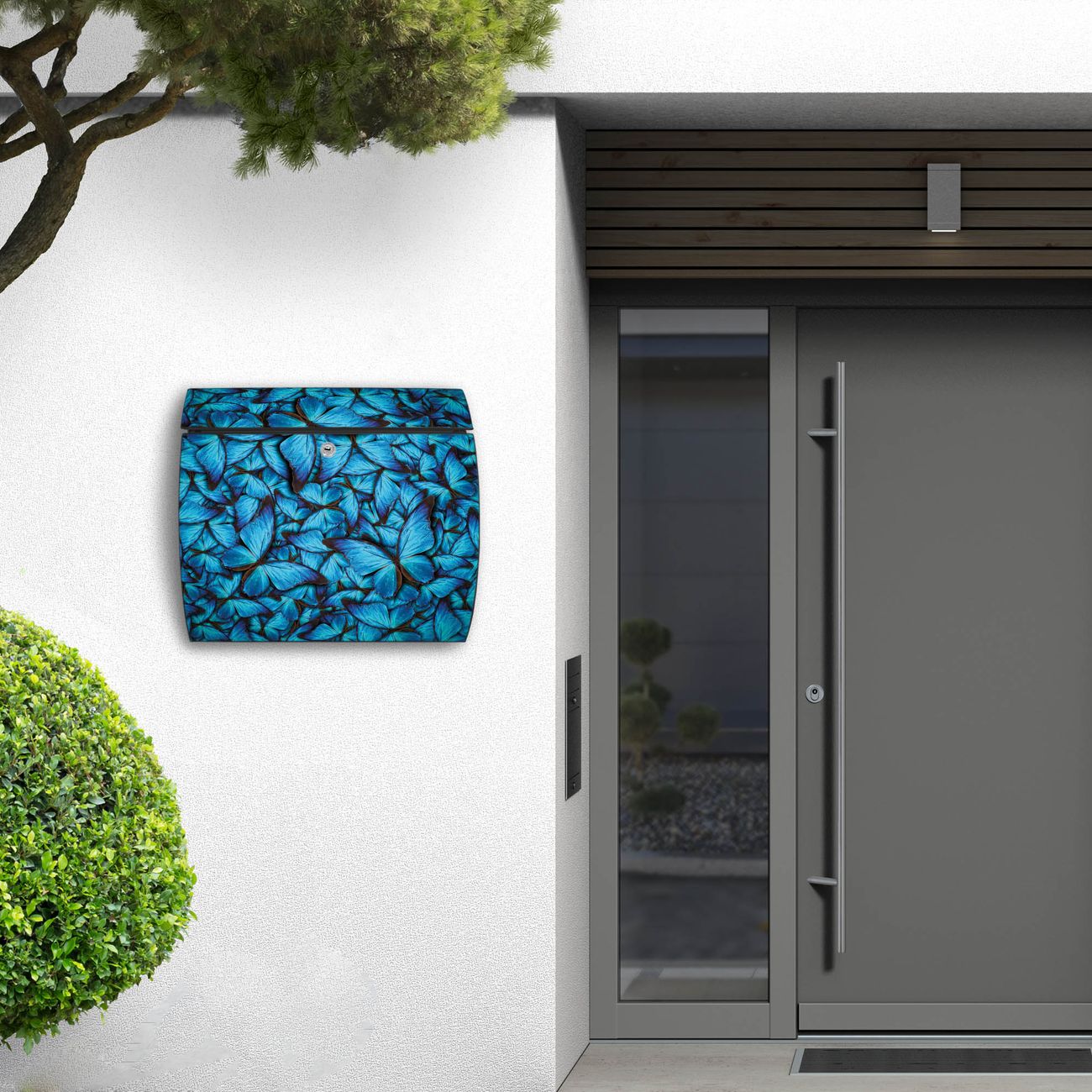 FUNKTION: DESIGN: Das Burg Wächter Modell Toscana mit Motiv Fürstliche Falter hat ein sehr ansprechendes und zeitloses Design und ist besonderes wetterfest. Heben Sie Sich von der tristen grauen Masse ab, ohne auf Funktionalität zu verzichten. Wir bieten Ihnen ebenfalls Namensschilder, bereits beschriftet oder frei zu beschriften, und verschiedene selbst gestaltete Bitte-Keine-Werbung-Aufkleber. DETAILS: Der Postkasten besteht aus vollflächig verzinktem Stahl welcher in Anthrazit oder Weiß lackiert wurde oder aus Edelstahl (je nach gewählter Variante). Das Motiv besteht aus einer wetter- und UV-festen Folie, die mit einem Schutzlaminat überzogen ist, durch die Ihren Briefkasten zusätzlich vor Kratzern geschützt ist und auf den Briefkasten kaschiert wurde. Sie erhalten zu Ihrem neuen Design Briefkasten 2 Schlüssel sowie das passende Montagematerial. BANJADO: Ihr Briefkasten wird von Burg Wächter in Deutschland gefertigt und in unserer kleinen Manufaktur von Hand veredelt. Die Motivfolie ist lösungsmittelfrei und schutzlaminiert, dies sorgt für einen langen Halt. Wir legen großen Wert auf die Verbindung von Funktionalität und Design. Sie erhalten besondere Handarbeit aus Sachsen und Made in Germany.