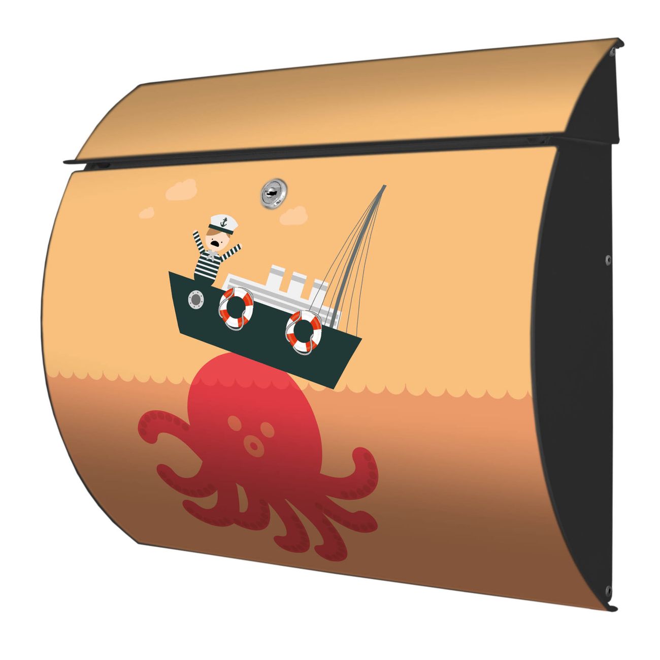 Der geschwungene Burg Wächter Briefkasten Toscana mit Motiv Havarie bietet Ihnen mit seinem großen Fassungsvermögen genügend Platz auch für große A4 Sendungen. Auf Wunsch können Sie bei uns den passenden Standfuß bestellen und so aus dem Wandbriefkasten einen Standbriefkasten machen. Der integrierte Öffnungsstopp ermöglicht eine einfache Handhabung beim Entnehmen der Post.