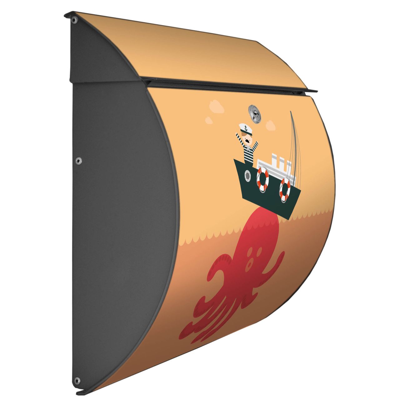 FUNKTION: DESIGN: Das Burg Wächter Modell Toscana mit Motiv Havarie hat ein sehr ansprechendes und zeitloses Design und ist besonderes wetterfest. Heben Sie Sich von der tristen grauen Masse ab, ohne auf Funktionalität zu verzichten. Wir bieten Ihnen ebenfalls Namensschilder, bereits beschriftet oder frei zu beschriften, und verschiedene selbst gestaltete Bitte-Keine-Werbung-Aufkleber. DETAILS: Der Postkasten besteht aus vollflächig verzinktem Stahl welcher in Anthrazit oder Weiß lackiert wurde oder aus Edelstahl (je nach gewählter Variante). Das Motiv besteht aus einer wetter- und UV-festen Folie, die mit einem Schutzlaminat überzogen ist, durch die Ihren Briefkasten zusätzlich vor Kratzern geschützt ist und auf den Briefkasten kaschiert wurde. Sie erhalten zu Ihrem neuen Design Briefkasten 2 Schlüssel sowie das passende Montagematerial. BANJADO: Ihr Briefkasten wird von Burg Wächter in Deutschland gefertigt und in unserer kleinen Manufaktur von Hand veredelt. Die Motivfolie ist lösungsmittelfrei und schutzlaminiert, dies sorgt für einen langen Halt. Wir legen großen Wert auf die Verbindung von Funktionalität und Design. Sie erhalten besondere Handarbeit aus Sachsen und Made in Germany.