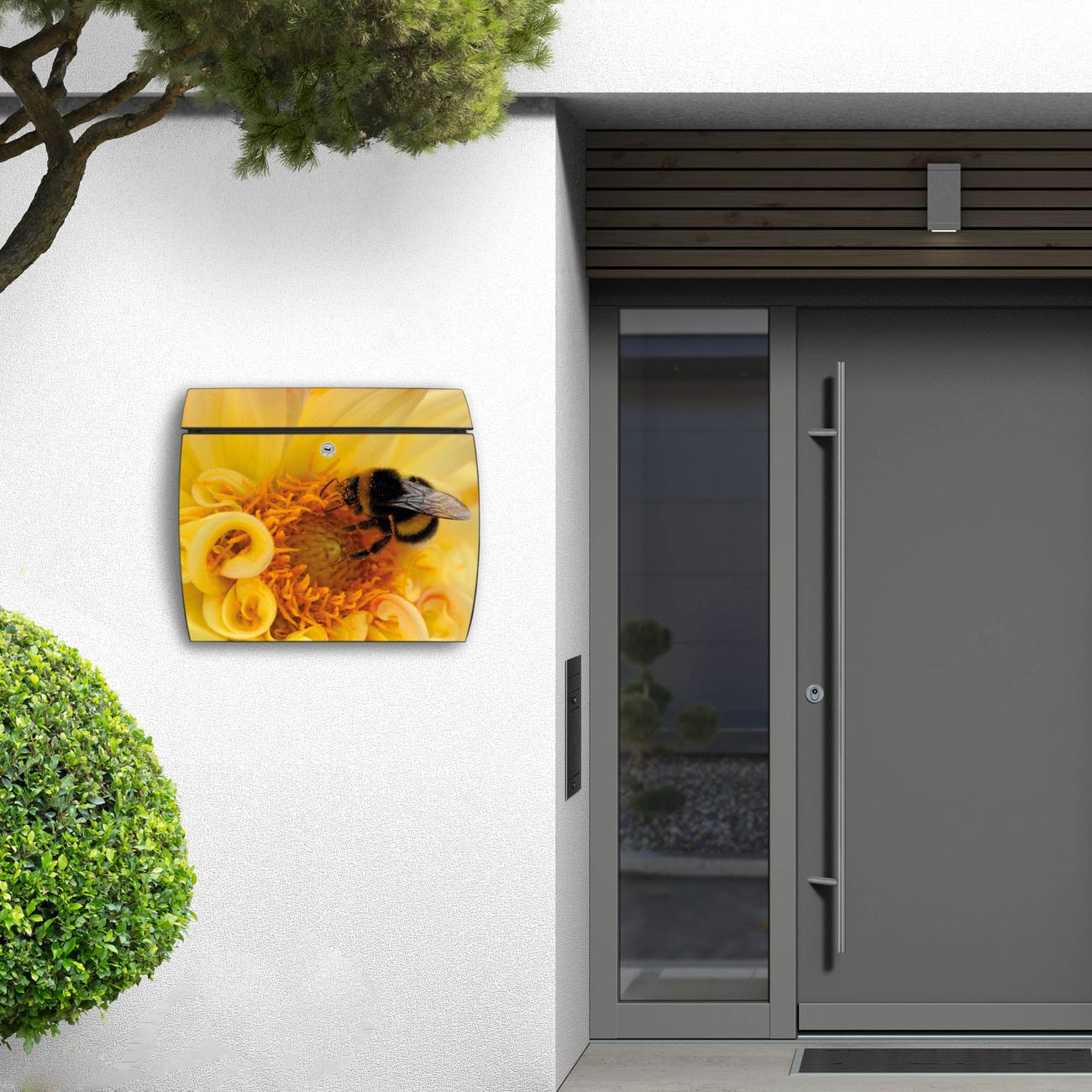 Der geschwungene Burg Wächter Briefkasten Toscana mit Motiv Hummel bietet Ihnen mit seinem großen Fassungsvermögen genügend Platz auch für große A4 Sendungen. Auf Wunsch können Sie bei uns den passenden Standfuß bestellen und so aus dem Wandbriefkasten einen Standbriefkasten machen. Der integrierte Öffnungsstopp ermöglicht eine einfache Handhabung beim Entnehmen der Post.