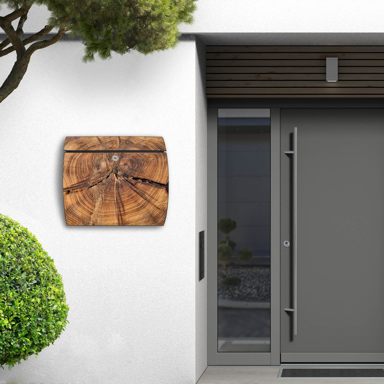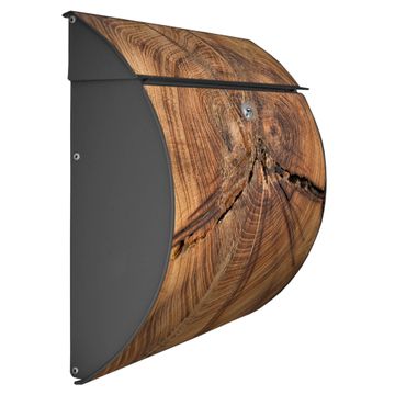 FUNKTION: DESIGN: Das Burg Wächter Modell Toscana mit Motiv Jahresringe hat ein sehr ansprechendes und zeitloses Design und ist besonderes wetterfest. Heben Sie Sich von der tristen grauen Masse ab, ohne auf Funktionalität zu verzichten. Wir bieten Ihnen ebenfalls Namensschilder, bereits beschriftet oder frei zu beschriften, und verschiedene selbst gestaltete Bitte-Keine-Werbung-Aufkleber. DETAILS: Der Postkasten besteht aus vollflächig verzinktem Stahl welcher in Anthrazit oder Weiß lackiert wurde oder aus Edelstahl (je nach gewählter Variante). Das Motiv besteht aus einer wetter- und UV-festen Folie, die mit einem Schutzlaminat überzogen ist, durch die Ihren Briefkasten zusätzlich vor Kratzern geschützt ist und auf den Briefkasten kaschiert wurde. Sie erhalten zu Ihrem neuen Design Briefkasten 2 Schlüssel sowie das passende Montagematerial. BANJADO: Ihr Briefkasten wird von Burg Wächter in Deutschland gefertigt und in unserer kleinen Manufaktur von Hand veredelt. Die Motivfolie ist lösungsmittelfrei und schutzlaminiert, dies sorgt für einen langen Halt. Wir legen großen Wert auf die Verbindung von Funktionalität und Design. Sie erhalten besondere Handarbeit aus Sachsen und Made in Germany.