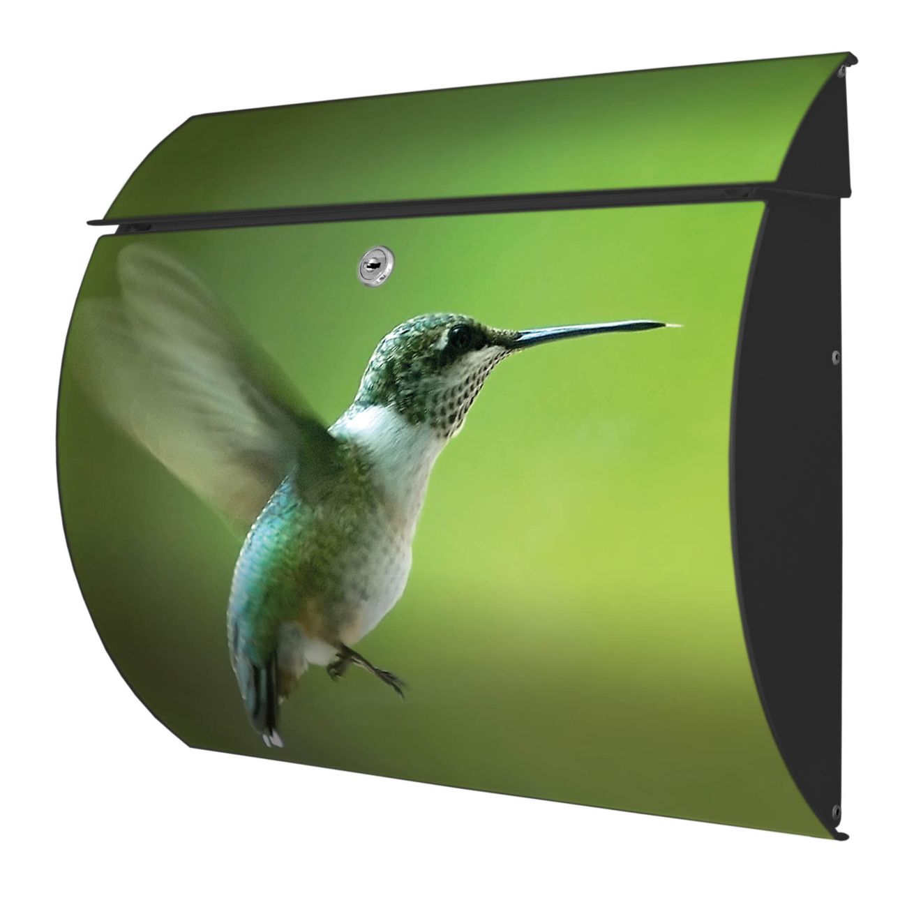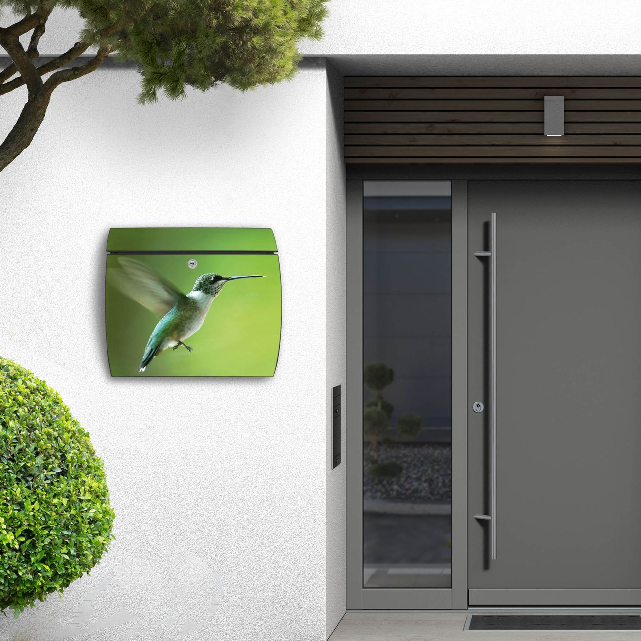 FUNKTION: DESIGN: Das Burg Wächter Modell Toscana mit Motiv Kolibri hat ein sehr ansprechendes und zeitloses Design und ist besonderes wetterfest. Heben Sie Sich von der tristen grauen Masse ab, ohne auf Funktionalität zu verzichten. Wir bieten Ihnen ebenfalls Namensschilder, bereits beschriftet oder frei zu beschriften, und verschiedene selbst gestaltete Bitte-Keine-Werbung-Aufkleber. DETAILS: Der Postkasten besteht aus vollflächig verzinktem Stahl welcher in Anthrazit oder Weiß lackiert wurde oder aus Edelstahl (je nach gewählter Variante). Das Motiv besteht aus einer wetter- und UV-festen Folie, die mit einem Schutzlaminat überzogen ist, durch die Ihren Briefkasten zusätzlich vor Kratzern geschützt ist und auf den Briefkasten kaschiert wurde. Sie erhalten zu Ihrem neuen Design Briefkasten 2 Schlüssel sowie das passende Montagematerial. BANJADO: Ihr Briefkasten wird von Burg Wächter in Deutschland gefertigt und in unserer kleinen Manufaktur von Hand veredelt. Die Motivfolie ist lösungsmittelfrei und schutzlaminiert, dies sorgt für einen langen Halt. Wir legen großen Wert auf die Verbindung von Funktionalität und Design. Sie erhalten besondere Handarbeit aus Sachsen und Made in Germany.