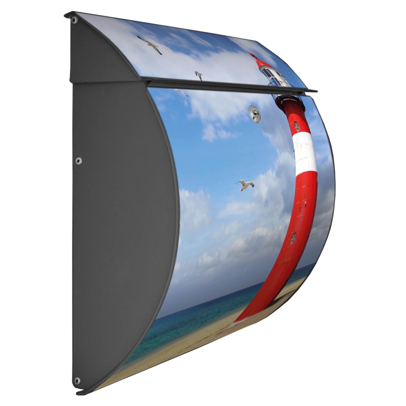 Der geschwungene Burg Wächter Briefkasten Toscana mit Motiv Leuchtturm Westkapelle bietet Ihnen mit seinem großen Fassungsvermögen genügend Platz auch für große A4 Sendungen. Auf Wunsch können Sie bei uns den passenden Standfuß bestellen und so aus dem Wandbriefkasten einen Standbriefkasten machen. Der integrierte Öffnungsstopp ermöglicht eine einfache Handhabung beim Entnehmen der Post.