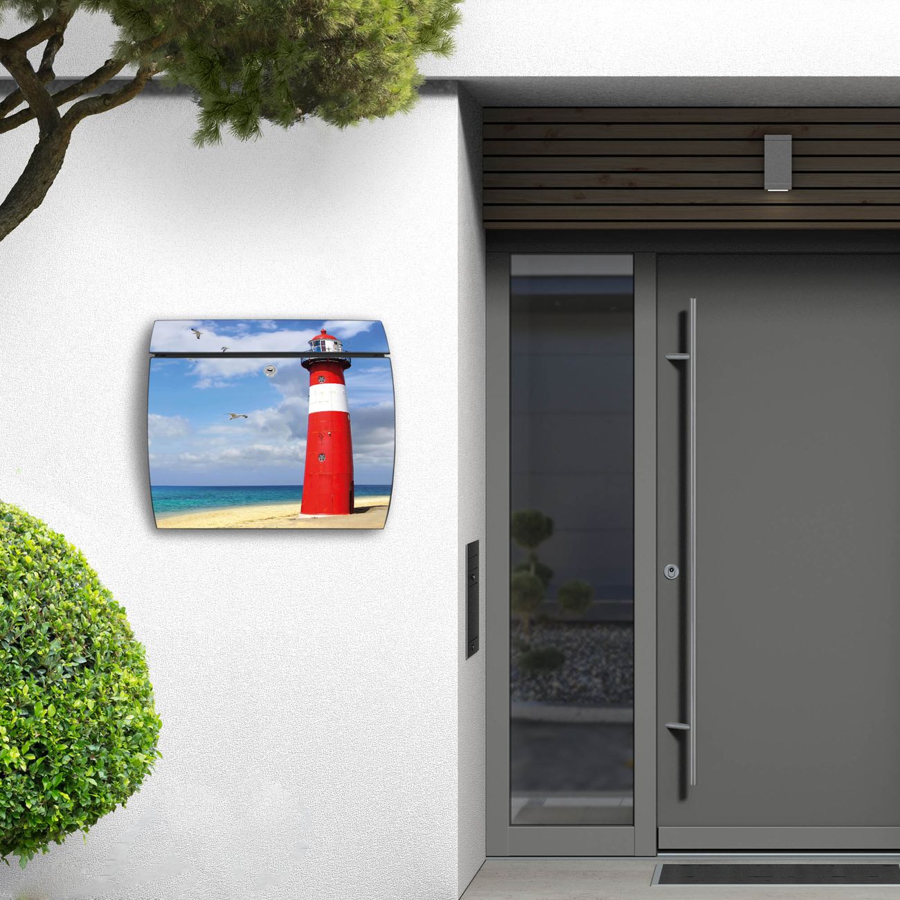 FUNKTION: DESIGN: Das Burg Wächter Modell Toscana mit Motiv Leuchtturm Westkapelle hat ein sehr ansprechendes und zeitloses Design und ist besonderes wetterfest. Heben Sie Sich von der tristen grauen Masse ab, ohne auf Funktionalität zu verzichten. Wir bieten Ihnen ebenfalls Namensschilder, bereits beschriftet oder frei zu beschriften, und verschiedene selbst gestaltete Bitte-Keine-Werbung-Aufkleber. DETAILS: Der Postkasten besteht aus vollflächig verzinktem Stahl welcher in Anthrazit oder Weiß lackiert wurde oder aus Edelstahl (je nach gewählter Variante). Das Motiv besteht aus einer wetter- und UV-festen Folie, die mit einem Schutzlaminat überzogen ist, durch die Ihren Briefkasten zusätzlich vor Kratzern geschützt ist und auf den Briefkasten kaschiert wurde. Sie erhalten zu Ihrem neuen Design Briefkasten 2 Schlüssel sowie das passende Montagematerial. BANJADO: Ihr Briefkasten wird von Burg Wächter in Deutschland gefertigt und in unserer kleinen Manufaktur von Hand veredelt. Die Motivfolie ist lösungsmittelfrei und schutzlaminiert, dies sorgt für einen langen Halt. Wir legen großen Wert auf die Verbindung von Funktionalität und Design. Sie erhalten besondere Handarbeit aus Sachsen und Made in Germany.