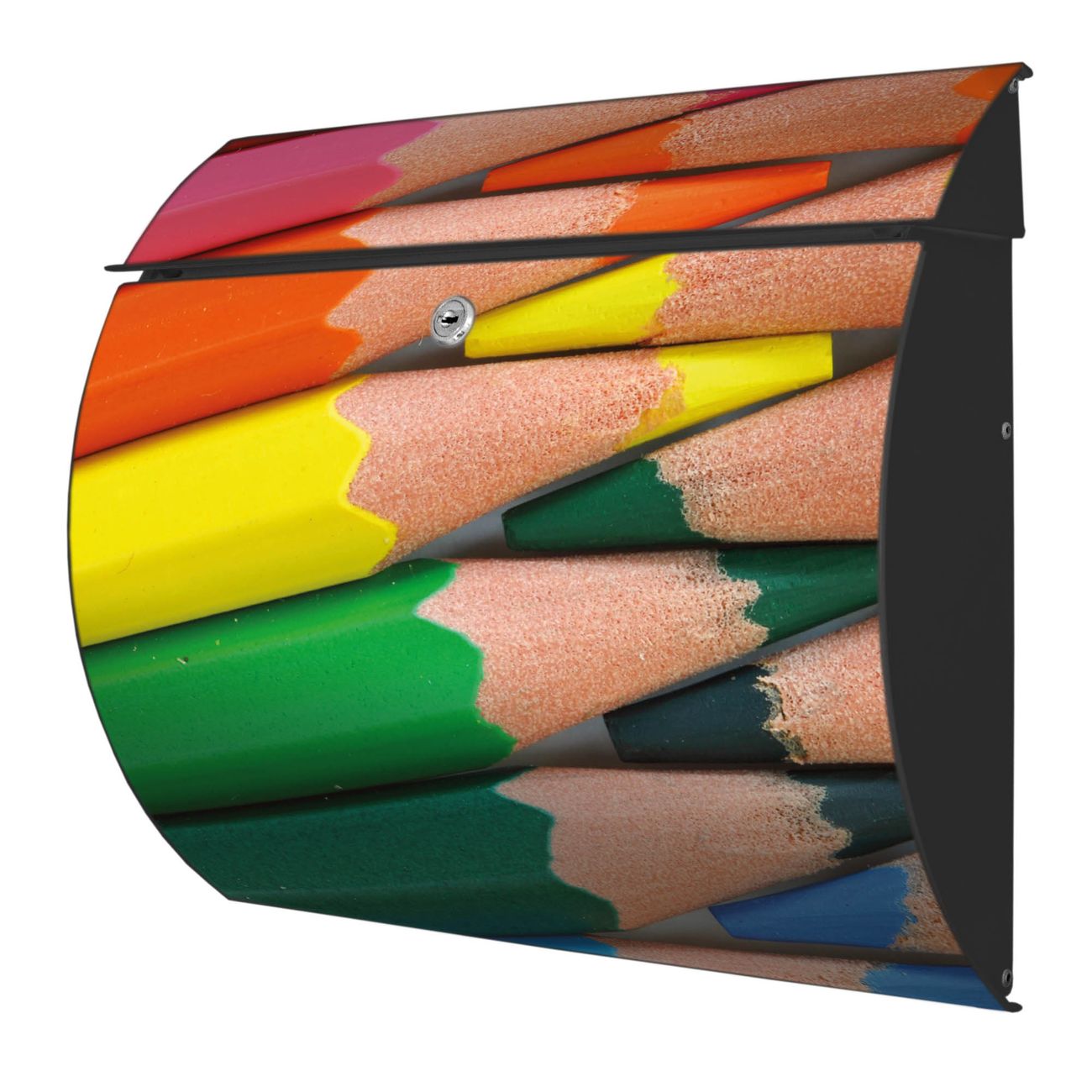 FUNKTION: DESIGN: Das Burg Wächter Modell Toscana mit Motiv Malstifte hat ein sehr ansprechendes und zeitloses Design und ist besonderes wetterfest. Heben Sie Sich von der tristen grauen Masse ab, ohne auf Funktionalität zu verzichten. Wir bieten Ihnen ebenfalls Namensschilder, bereits beschriftet oder frei zu beschriften, und verschiedene selbst gestaltete Bitte-Keine-Werbung-Aufkleber. DETAILS: Der Postkasten besteht aus vollflächig verzinktem Stahl welcher in Anthrazit oder Weiß lackiert wurde oder aus Edelstahl (je nach gewählter Variante). Das Motiv besteht aus einer wetter- und UV-festen Folie, die mit einem Schutzlaminat überzogen ist, durch die Ihren Briefkasten zusätzlich vor Kratzern geschützt ist und auf den Briefkasten kaschiert wurde. Sie erhalten zu Ihrem neuen Design Briefkasten 2 Schlüssel sowie das passende Montagematerial. BANJADO: Ihr Briefkasten wird von Burg Wächter in Deutschland gefertigt und in unserer kleinen Manufaktur von Hand veredelt. Die Motivfolie ist lösungsmittelfrei und schutzlaminiert, dies sorgt für einen langen Halt. Wir legen großen Wert auf die Verbindung von Funktionalität und Design. Sie erhalten besondere Handarbeit aus Sachsen und Made in Germany.