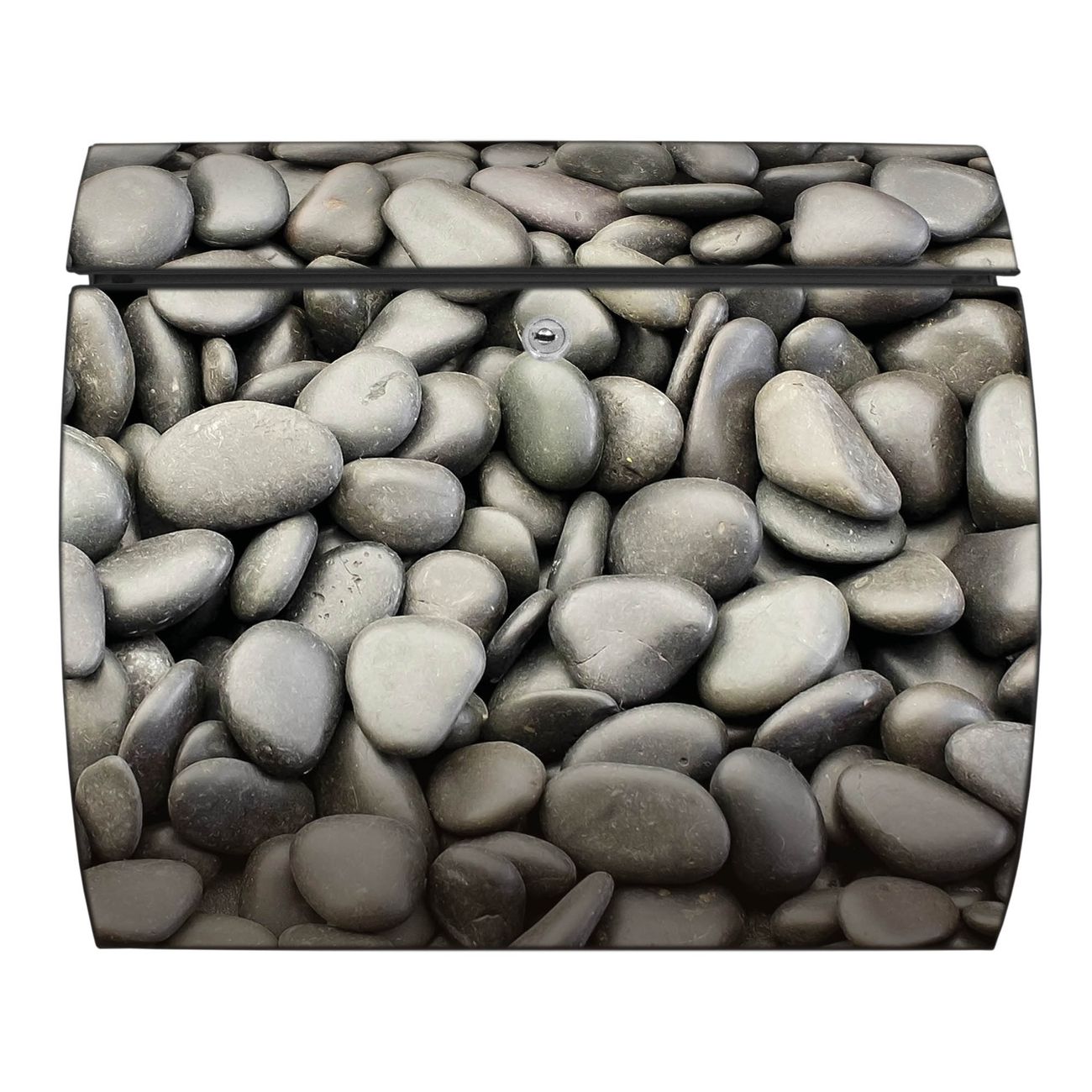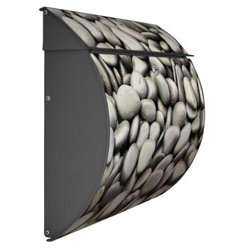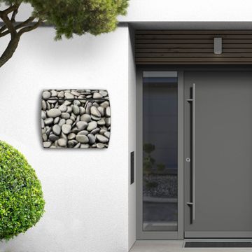 Der geschwungene Burg Wächter Briefkasten Toscana mit Motiv Nasse Kiesel bietet Ihnen mit seinem großen Fassungsvermögen genügend Platz auch für große A4 Sendungen. Auf Wunsch können Sie bei uns den passenden Standfuß bestellen und so aus dem Wandbriefkasten einen Standbriefkasten machen. Der integrierte Öffnungsstopp ermöglicht eine einfache Handhabung beim Entnehmen der Post.
