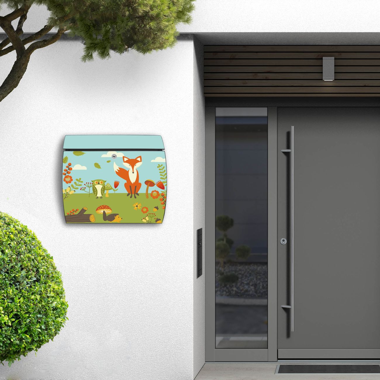 Der geschwungene Burg Wächter Briefkasten Toscana mit Motiv Neulich Im Wald bietet Ihnen mit seinem großen Fassungsvermögen genügend Platz auch für große A4 Sendungen. Auf Wunsch können Sie bei uns den passenden Standfuß bestellen und so aus dem Wandbriefkasten einen Standbriefkasten machen. Der integrierte Öffnungsstopp ermöglicht eine einfache Handhabung beim Entnehmen der Post.