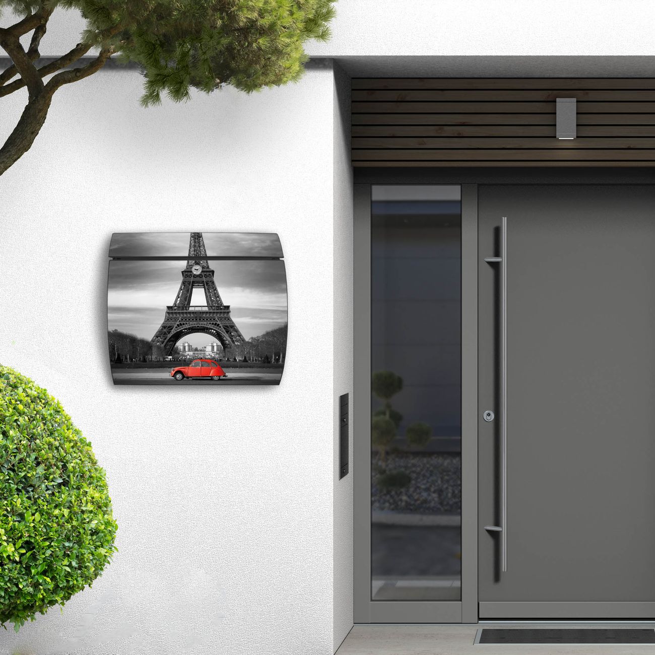FUNKTION: DESIGN: Das Burg Wächter Modell Toscana mit Motiv Paris hat ein sehr ansprechendes und zeitloses Design und ist besonderes wetterfest. Heben Sie Sich von der tristen grauen Masse ab, ohne auf Funktionalität zu verzichten. Wir bieten Ihnen ebenfalls Namensschilder, bereits beschriftet oder frei zu beschriften, und verschiedene selbst gestaltete Bitte-Keine-Werbung-Aufkleber. DETAILS: Der Postkasten besteht aus vollflächig verzinktem Stahl welcher in Anthrazit oder Weiß lackiert wurde oder aus Edelstahl (je nach gewählter Variante). Das Motiv besteht aus einer wetter- und UV-festen Folie, die mit einem Schutzlaminat überzogen ist, durch die Ihren Briefkasten zusätzlich vor Kratzern geschützt ist und auf den Briefkasten kaschiert wurde. Sie erhalten zu Ihrem neuen Design Briefkasten 2 Schlüssel sowie das passende Montagematerial. BANJADO: Ihr Briefkasten wird von Burg Wächter in Deutschland gefertigt und in unserer kleinen Manufaktur von Hand veredelt. Die Motivfolie ist lösungsmittelfrei und schutzlaminiert, dies sorgt für einen langen Halt. Wir legen großen Wert auf die Verbindung von Funktionalität und Design. Sie erhalten besondere Handarbeit aus Sachsen und Made in Germany.
