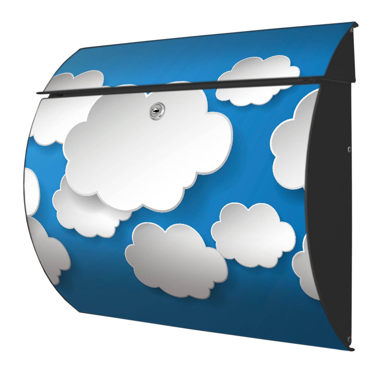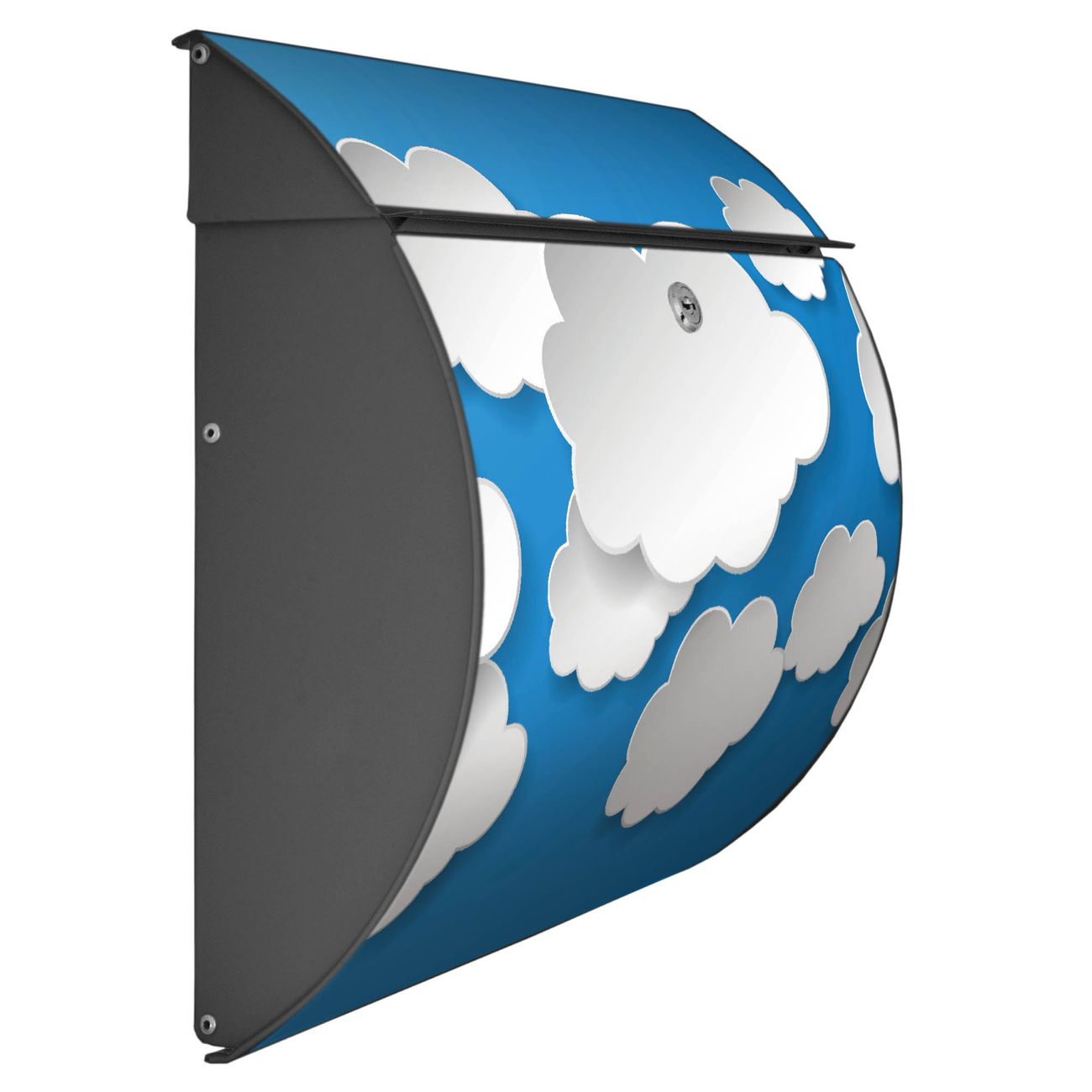 FUNKTION: DESIGN: Das Burg Wächter Modell Toscana mit Motiv Plastische Wolken hat ein sehr ansprechendes und zeitloses Design und ist besonderes wetterfest. Heben Sie Sich von der tristen grauen Masse ab, ohne auf Funktionalität zu verzichten. Wir bieten Ihnen ebenfalls Namensschilder, bereits beschriftet oder frei zu beschriften, und verschiedene selbst gestaltete Bitte-Keine-Werbung-Aufkleber. DETAILS: Der Postkasten besteht aus vollflächig verzinktem Stahl welcher in Anthrazit oder Weiß lackiert wurde oder aus Edelstahl (je nach gewählter Variante). Das Motiv besteht aus einer wetter- und UV-festen Folie, die mit einem Schutzlaminat überzogen ist, durch die Ihren Briefkasten zusätzlich vor Kratzern geschützt ist und auf den Briefkasten kaschiert wurde. Sie erhalten zu Ihrem neuen Design Briefkasten 2 Schlüssel sowie das passende Montagematerial. BANJADO: Ihr Briefkasten wird von Burg Wächter in Deutschland gefertigt und in unserer kleinen Manufaktur von Hand veredelt. Die Motivfolie ist lösungsmittelfrei und schutzlaminiert, dies sorgt für einen langen Halt. Wir legen großen Wert auf die Verbindung von Funktionalität und Design. Sie erhalten besondere Handarbeit aus Sachsen und Made in Germany.