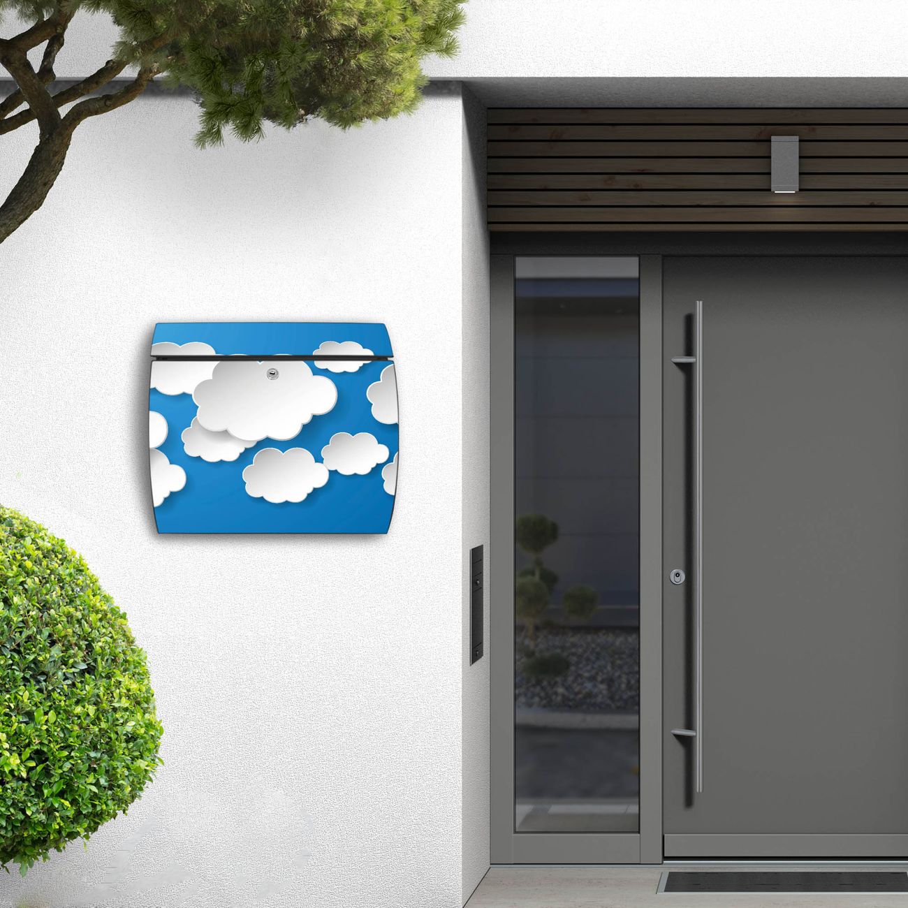 Der geschwungene Burg Wächter Briefkasten Toscana mit Motiv Plastische Wolken bietet Ihnen mit seinem großen Fassungsvermögen genügend Platz auch für große A4 Sendungen. Auf Wunsch können Sie bei uns den passenden Standfuß bestellen und so aus dem Wandbriefkasten einen Standbriefkasten machen. Der integrierte Öffnungsstopp ermöglicht eine einfache Handhabung beim Entnehmen der Post.