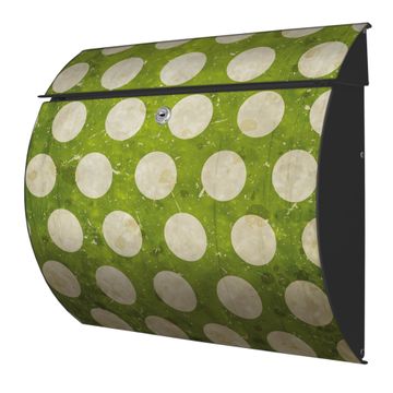 Der geschwungene Burg Wächter Briefkasten Toscana mit Motiv Punkte Grün Vintage bietet Ihnen mit seinem großen Fassungsvermögen genügend Platz auch für große A4 Sendungen. Auf Wunsch können Sie bei uns den passenden Standfuß bestellen und so aus dem Wandbriefkasten einen Standbriefkasten machen. Der integrierte Öffnungsstopp ermöglicht eine einfache Handhabung beim Entnehmen der Post.