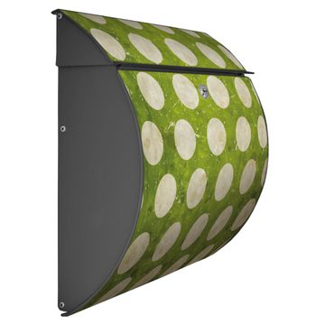 FUNKTION: DESIGN: Das Burg Wächter Modell Toscana mit Motiv Punkte Grün Vintage hat ein sehr ansprechendes und zeitloses Design und ist besonderes wetterfest. Heben Sie Sich von der tristen grauen Masse ab, ohne auf Funktionalität zu verzichten. Wir bieten Ihnen ebenfalls Namensschilder, bereits beschriftet oder frei zu beschriften, und verschiedene selbst gestaltete Bitte-Keine-Werbung-Aufkleber. DETAILS: Der Postkasten besteht aus vollflächig verzinktem Stahl welcher in Anthrazit oder Weiß lackiert wurde oder aus Edelstahl (je nach gewählter Variante). Das Motiv besteht aus einer wetter- und UV-festen Folie, die mit einem Schutzlaminat überzogen ist, durch die Ihren Briefkasten zusätzlich vor Kratzern geschützt ist und auf den Briefkasten kaschiert wurde. Sie erhalten zu Ihrem neuen Design Briefkasten 2 Schlüssel sowie das passende Montagematerial. BANJADO: Ihr Briefkasten wird von Burg Wächter in Deutschland gefertigt und in unserer kleinen Manufaktur von Hand veredelt. Die Motivfolie ist lösungsmittelfrei und schutzlaminiert, dies sorgt für einen langen Halt. Wir legen großen Wert auf die Verbindung von Funktionalität und Design. Sie erhalten besondere Handarbeit aus Sachsen und Made in Germany.