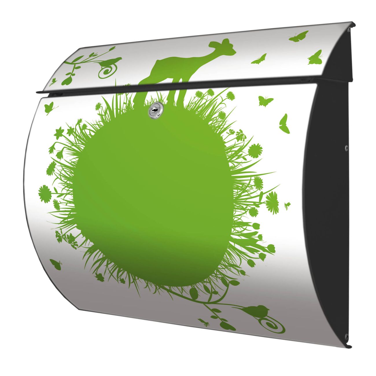 FUNKTION: DESIGN: Das Burg Wächter Modell Toscana mit Motiv Rehkitz hat ein sehr ansprechendes und zeitloses Design und ist besonderes wetterfest. Heben Sie Sich von der tristen grauen Masse ab, ohne auf Funktionalität zu verzichten. Wir bieten Ihnen ebenfalls Namensschilder, bereits beschriftet oder frei zu beschriften, und verschiedene selbst gestaltete Bitte-Keine-Werbung-Aufkleber. DETAILS: Der Postkasten besteht aus vollflächig verzinktem Stahl welcher in Anthrazit oder Weiß lackiert wurde oder aus Edelstahl (je nach gewählter Variante). Das Motiv besteht aus einer wetter- und UV-festen Folie, die mit einem Schutzlaminat überzogen ist, durch die Ihren Briefkasten zusätzlich vor Kratzern geschützt ist und auf den Briefkasten kaschiert wurde. Sie erhalten zu Ihrem neuen Design Briefkasten 2 Schlüssel sowie das passende Montagematerial. BANJADO: Ihr Briefkasten wird von Burg Wächter in Deutschland gefertigt und in unserer kleinen Manufaktur von Hand veredelt. Die Motivfolie ist lösungsmittelfrei und schutzlaminiert, dies sorgt für einen langen Halt. Wir legen großen Wert auf die Verbindung von Funktionalität und Design. Sie erhalten besondere Handarbeit aus Sachsen und Made in Germany.