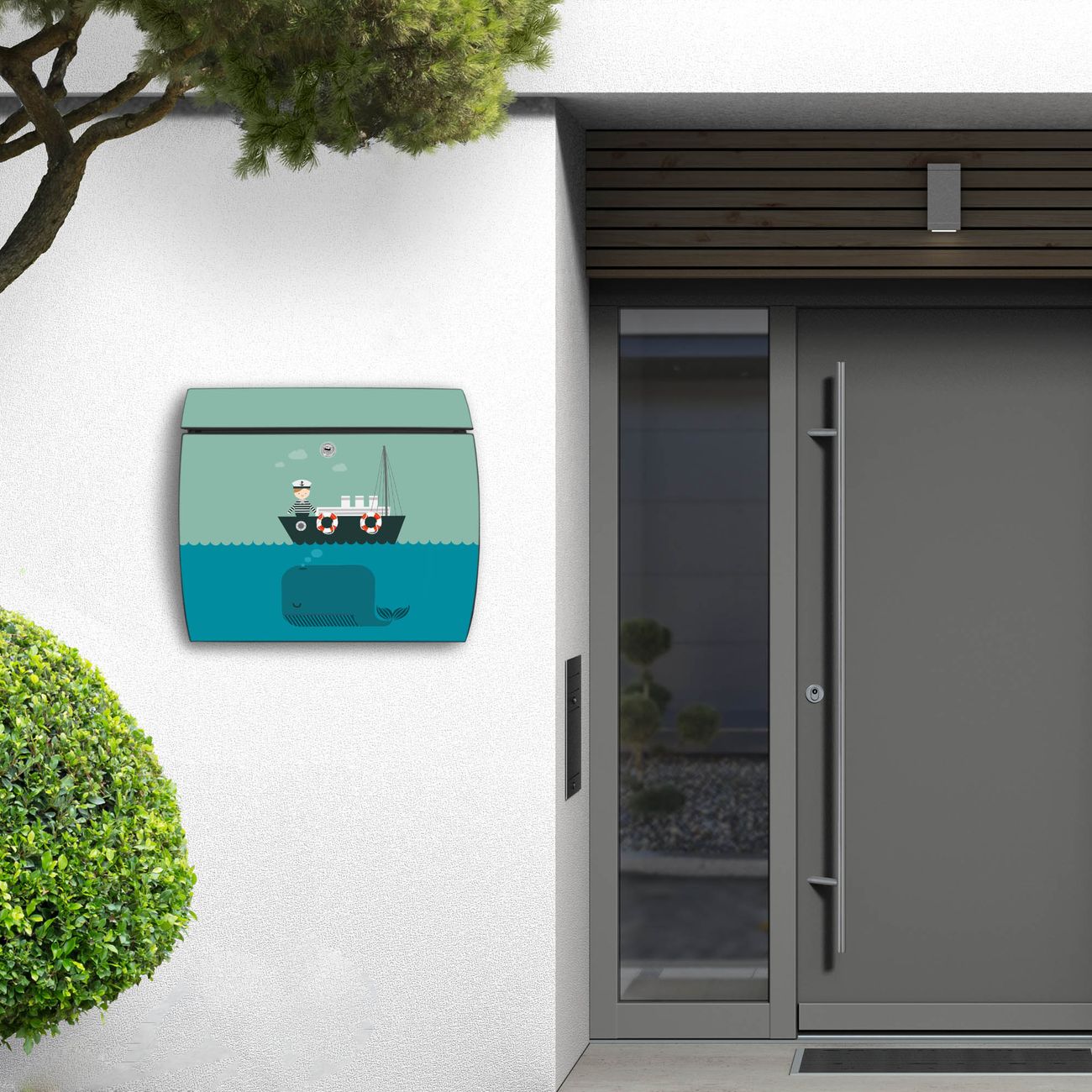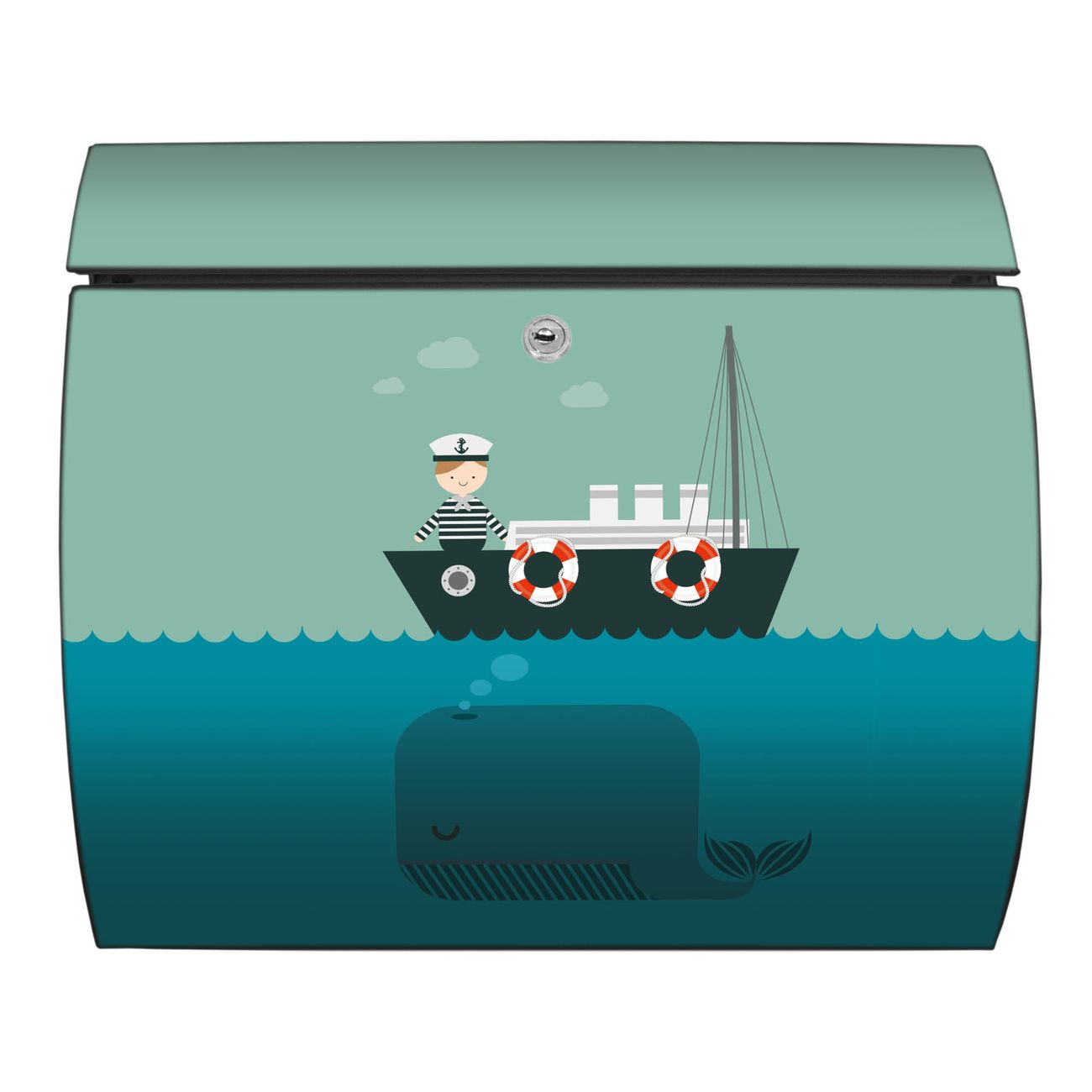 FUNKTION: DESIGN: Das Burg Wächter Modell Toscana mit Motiv Rettet die Wale hat ein sehr ansprechendes und zeitloses Design und ist besonderes wetterfest. Heben Sie Sich von der tristen grauen Masse ab, ohne auf Funktionalität zu verzichten. Wir bieten Ihnen ebenfalls Namensschilder, bereits beschriftet oder frei zu beschriften, und verschiedene selbst gestaltete Bitte-Keine-Werbung-Aufkleber. DETAILS: Der Postkasten besteht aus vollflächig verzinktem Stahl welcher in Anthrazit oder Weiß lackiert wurde oder aus Edelstahl (je nach gewählter Variante). Das Motiv besteht aus einer wetter- und UV-festen Folie, die mit einem Schutzlaminat überzogen ist, durch die Ihren Briefkasten zusätzlich vor Kratzern geschützt ist und auf den Briefkasten kaschiert wurde. Sie erhalten zu Ihrem neuen Design Briefkasten 2 Schlüssel sowie das passende Montagematerial. BANJADO: Ihr Briefkasten wird von Burg Wächter in Deutschland gefertigt und in unserer kleinen Manufaktur von Hand veredelt. Die Motivfolie ist lösungsmittelfrei und schutzlaminiert, dies sorgt für einen langen Halt. Wir legen großen Wert auf die Verbindung von Funktionalität und Design. Sie erhalten besondere Handarbeit aus Sachsen und Made in Germany.