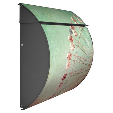 Der geschwungene Burg Wächter Briefkasten Toscana mit Motiv Riesenrad 1 bietet Ihnen mit seinem großen Fassungsvermögen genügend Platz auch für große A4 Sendungen. Auf Wunsch können Sie bei uns den passenden Standfuß bestellen und so aus dem Wandbriefkasten einen Standbriefkasten machen. Der integrierte Öffnungsstopp ermöglicht eine einfache Handhabung beim Entnehmen der Post.