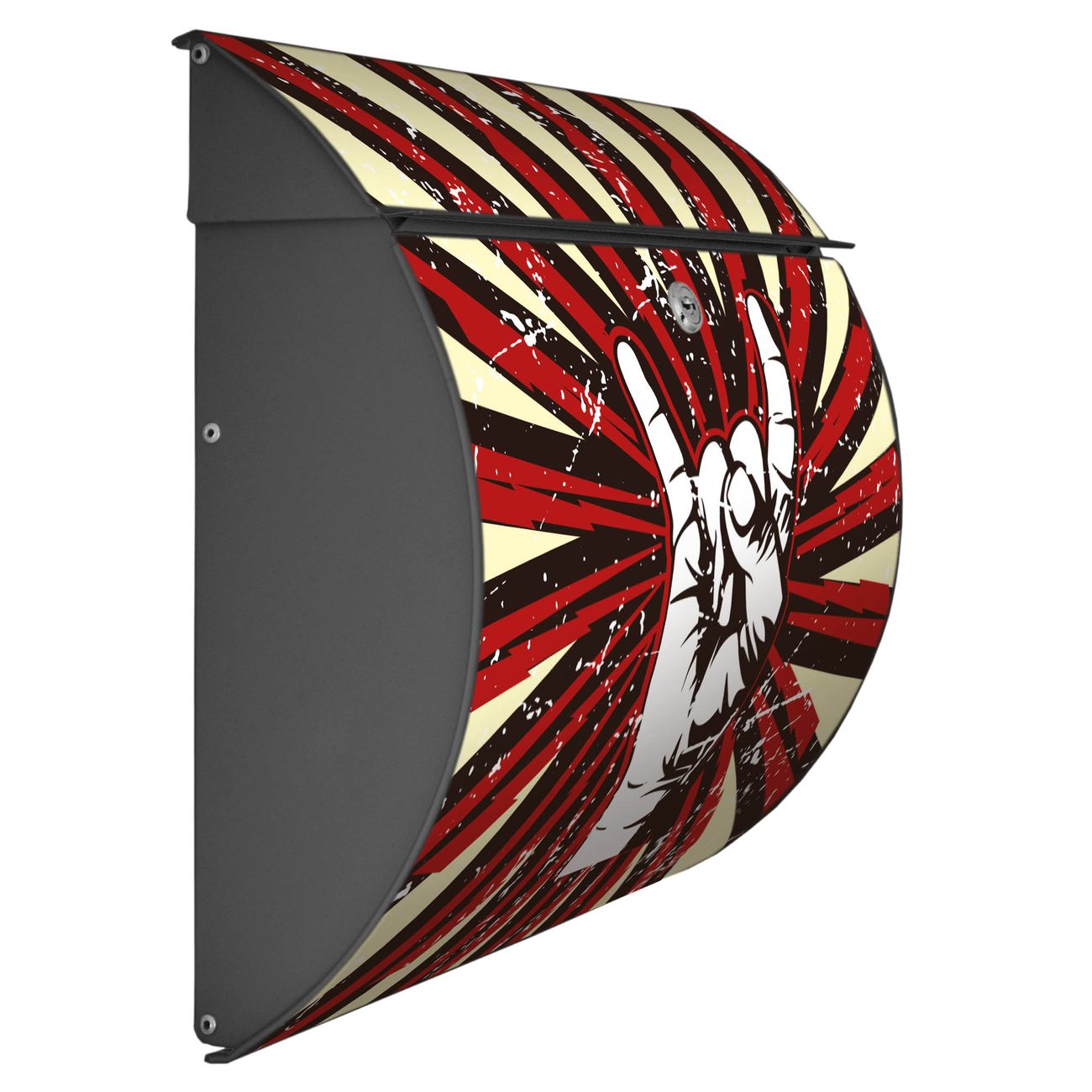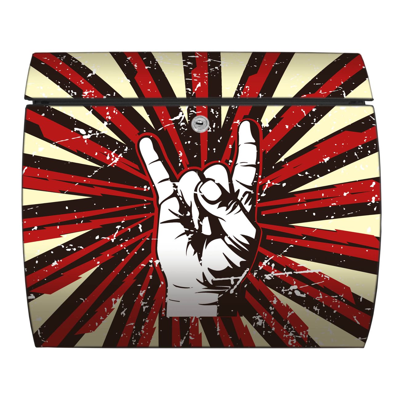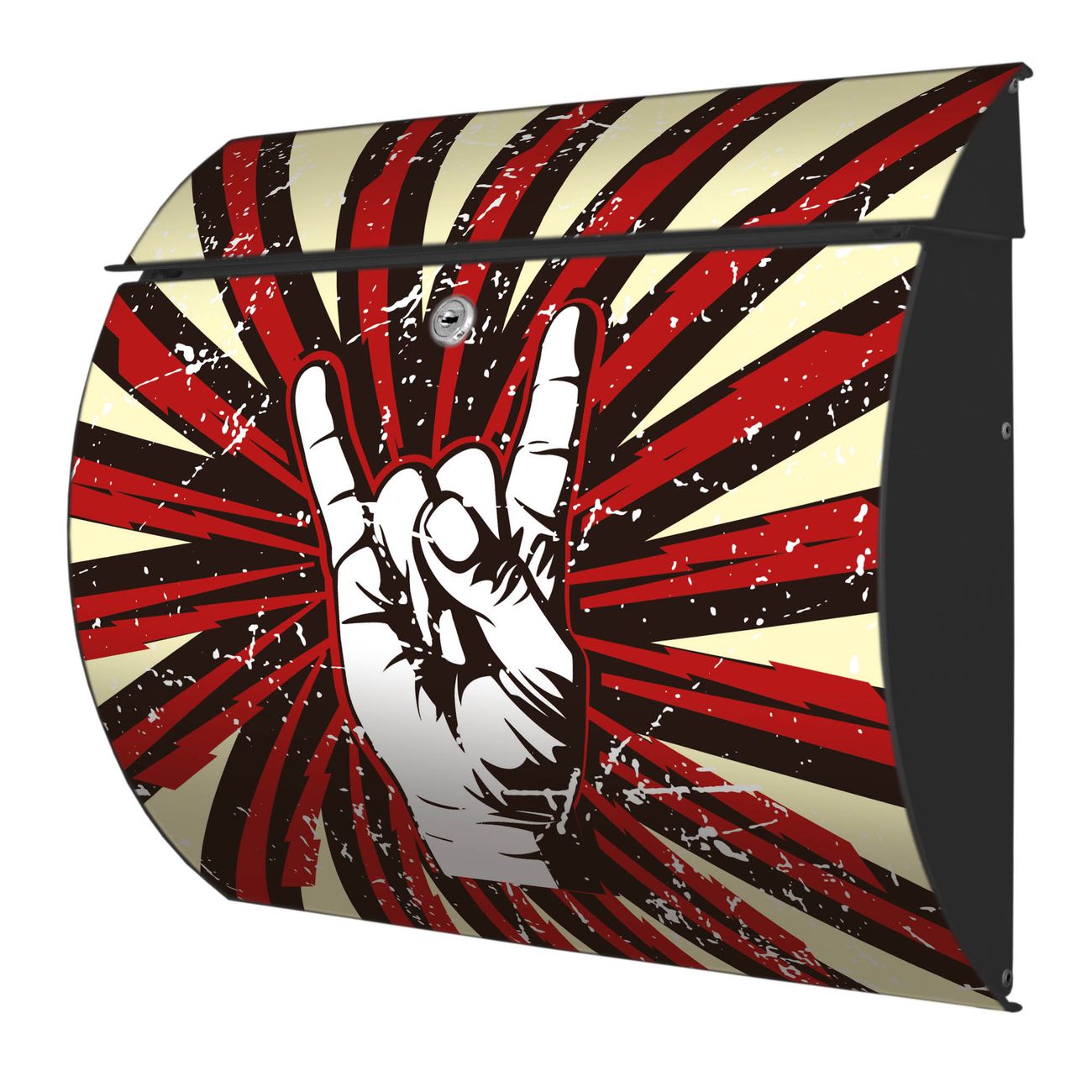 Der geschwungene Burg Wächter Briefkasten Toscana mit Motiv Rock On bietet Ihnen mit seinem großen Fassungsvermögen genügend Platz auch für große A4 Sendungen. Auf Wunsch können Sie bei uns den passenden Standfuß bestellen und so aus dem Wandbriefkasten einen Standbriefkasten machen. Der integrierte Öffnungsstopp ermöglicht eine einfache Handhabung beim Entnehmen der Post.